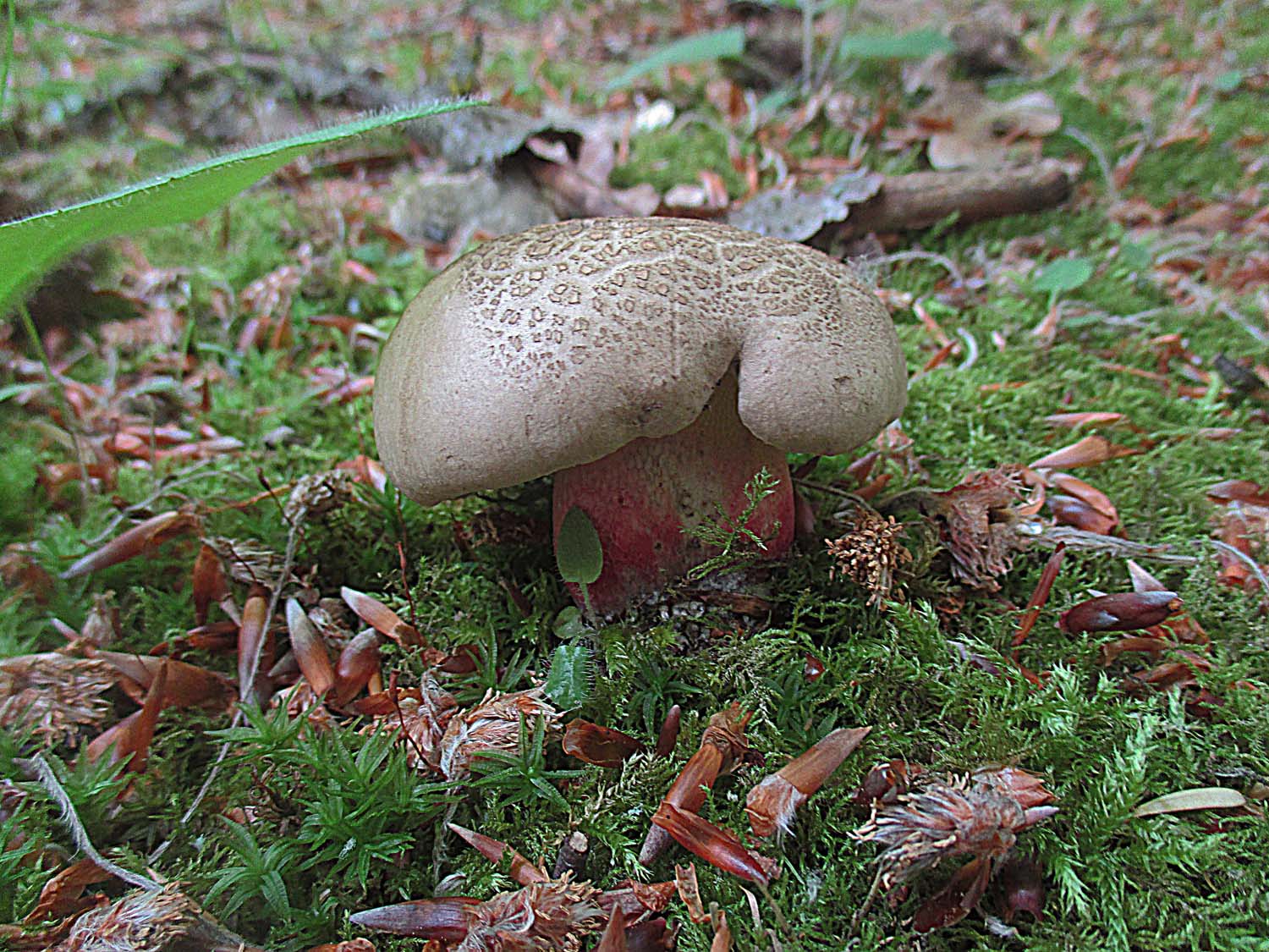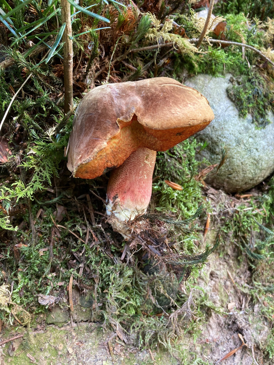 und ein einziges Exemplar von Suillellus luridus, dem Netzstieligen Hexenröhrling.