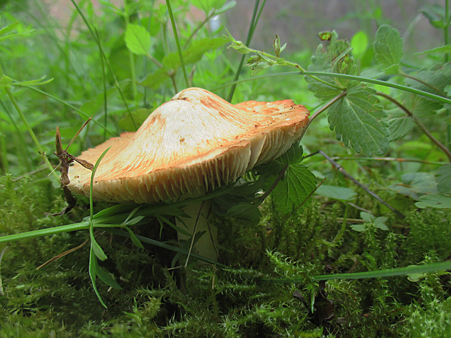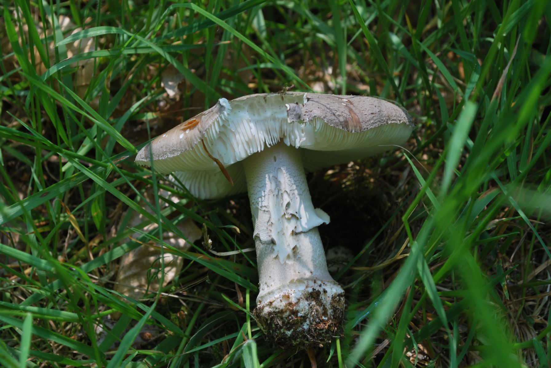 Agaricus arvensis - Weißer Anisegerling trotz der leichten Gilbung an der Basis. Die haben deutlich nach Bittermandel gerochen.
