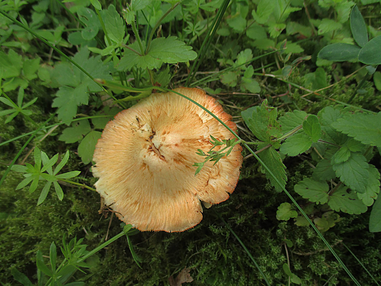 Agaricus arvensis - Weißer Anisegerling trotz der leichten Gilbung an der Basis. Die haben deutlich nach Bittermandel gerochen.
