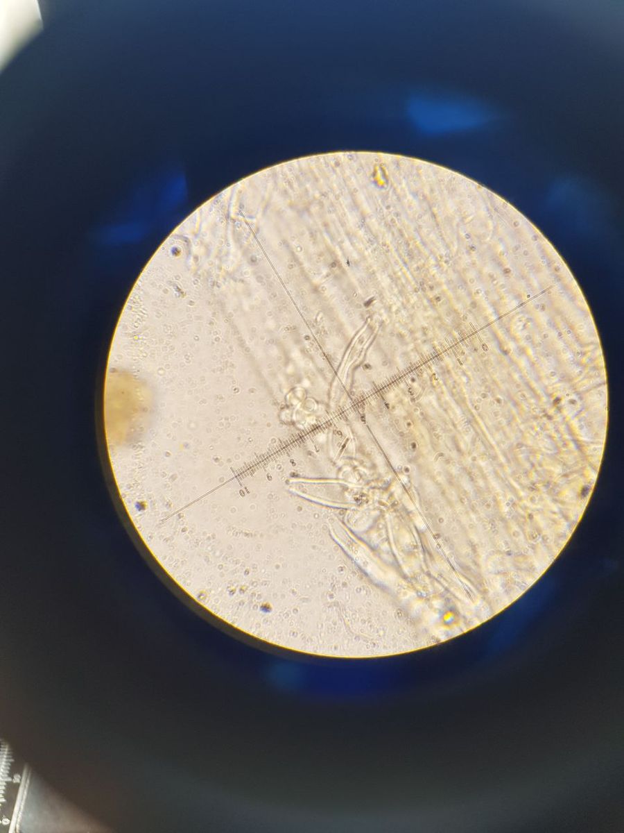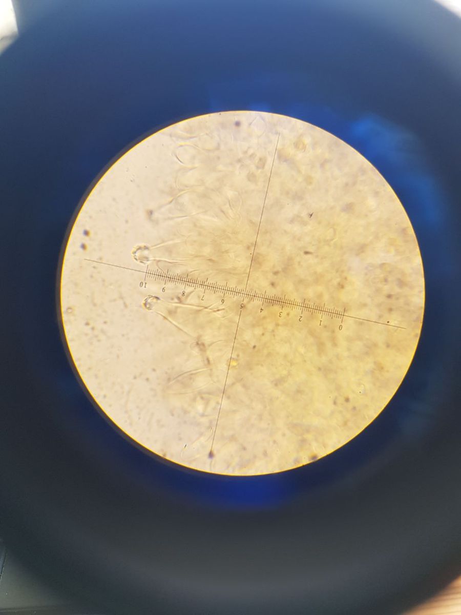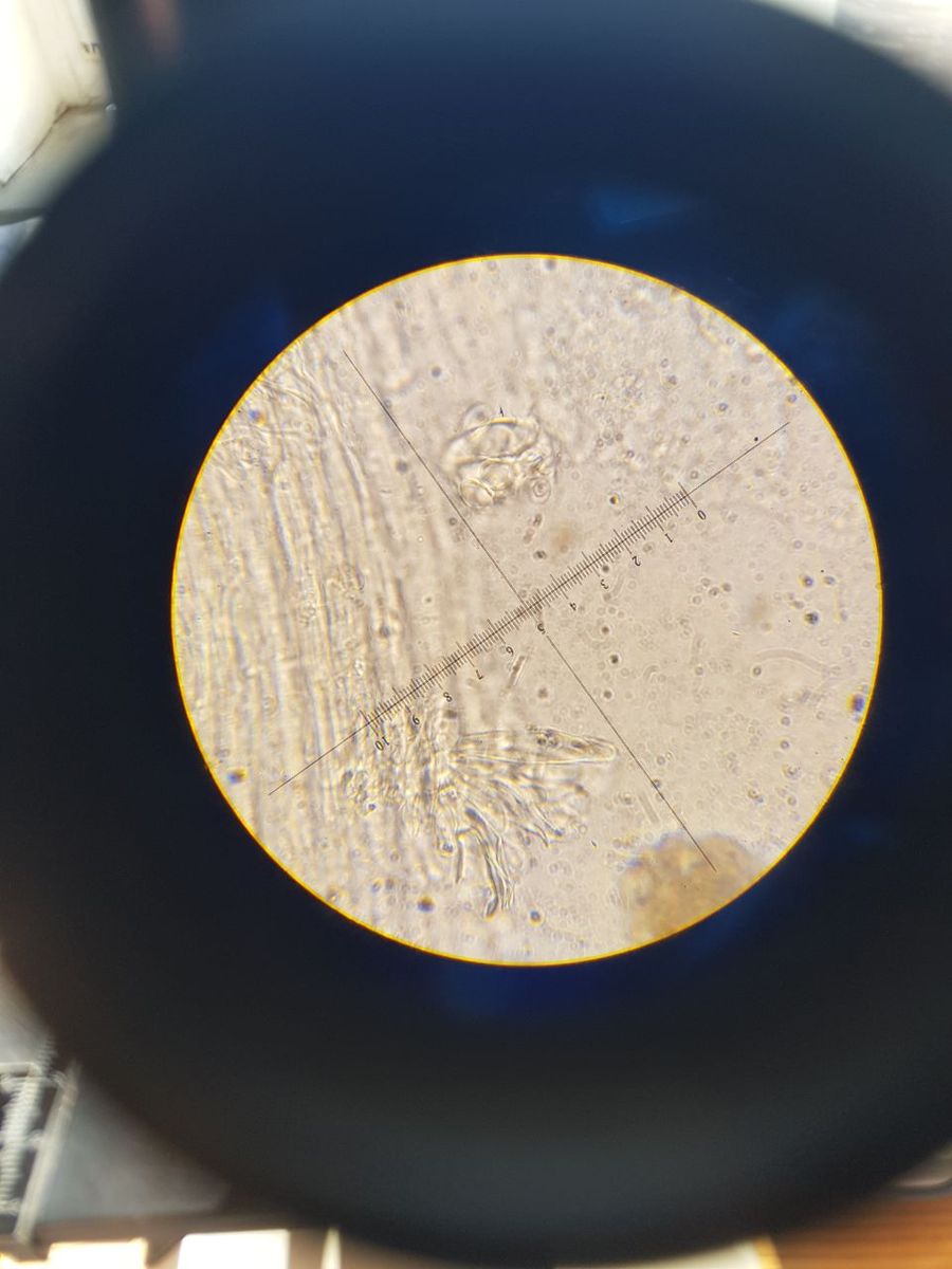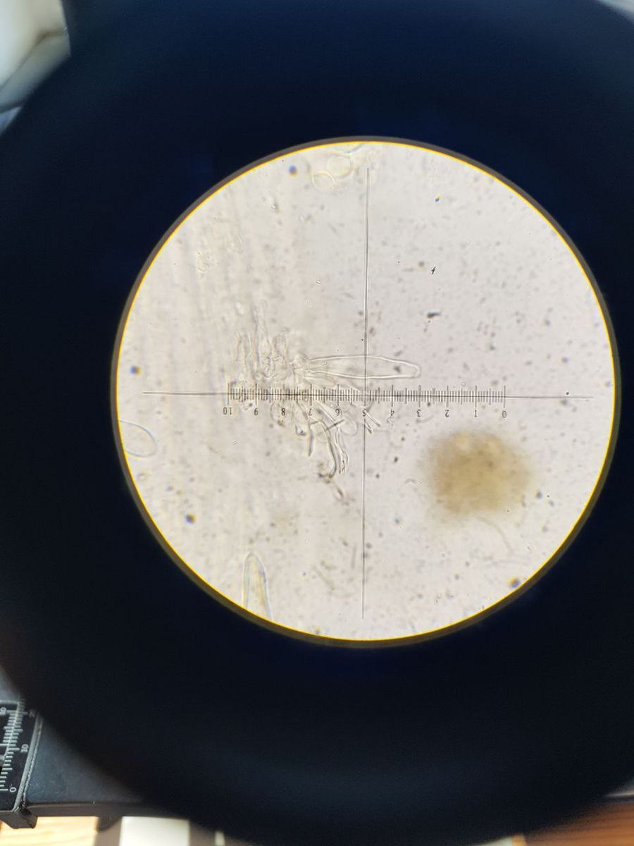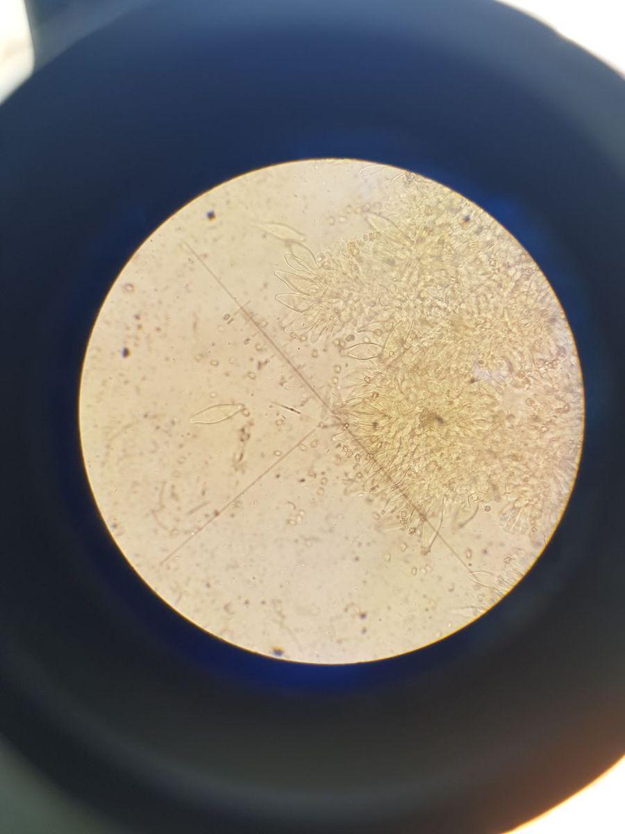 So und jetzt zu den Kaulozystiden, hier jetzt mal ein paar Fotos von einem dünnen mit der Pinzette abgezogenen Streifen. Ich sehe aber die Gefahr, dass da Hymenialzystiden drin sind oder auch Hyphenenden. Könnt ihr mir sagen ob das zumindest teilweise Kaulozystiden sind? Je nachdem was ihr sagt würde ich den Stiel dann mal genau von oben nach unten absuchen um zu schauen ob sie nur oben vorkommen.