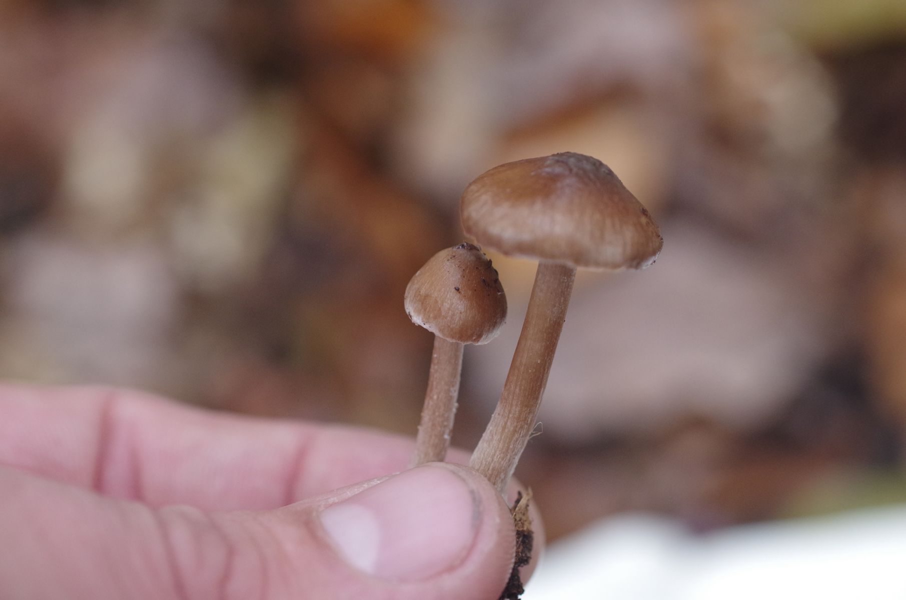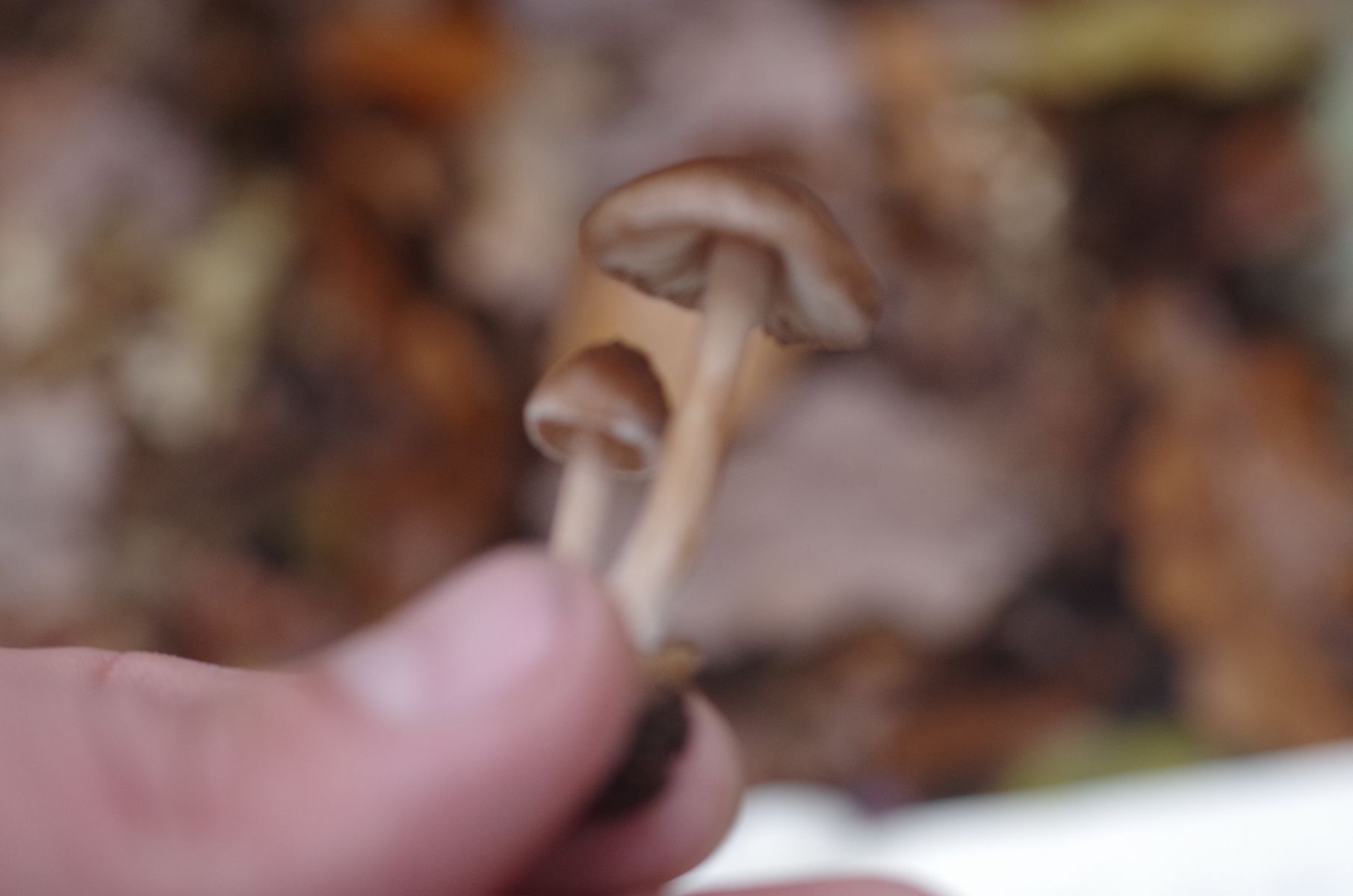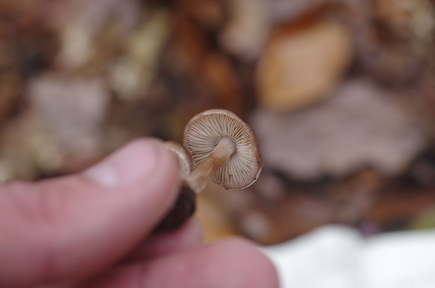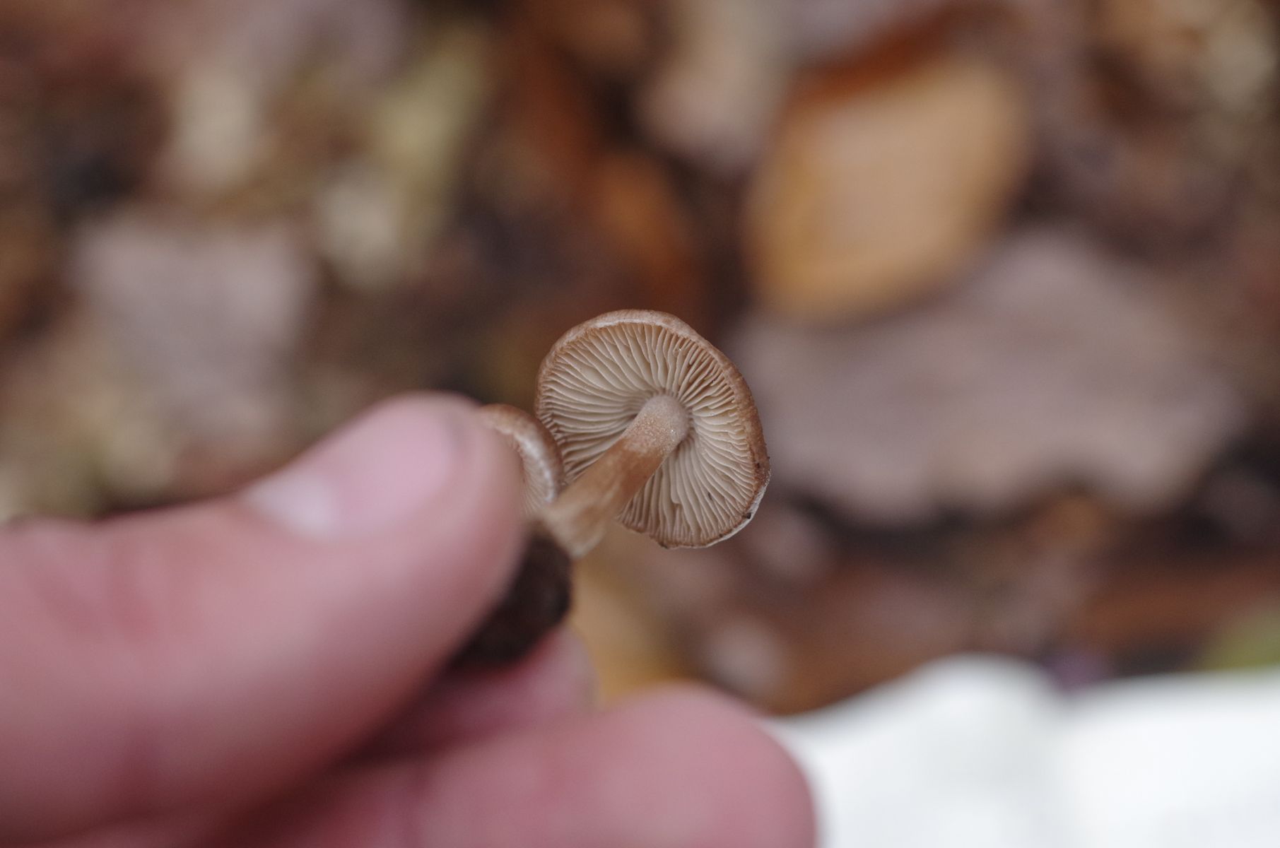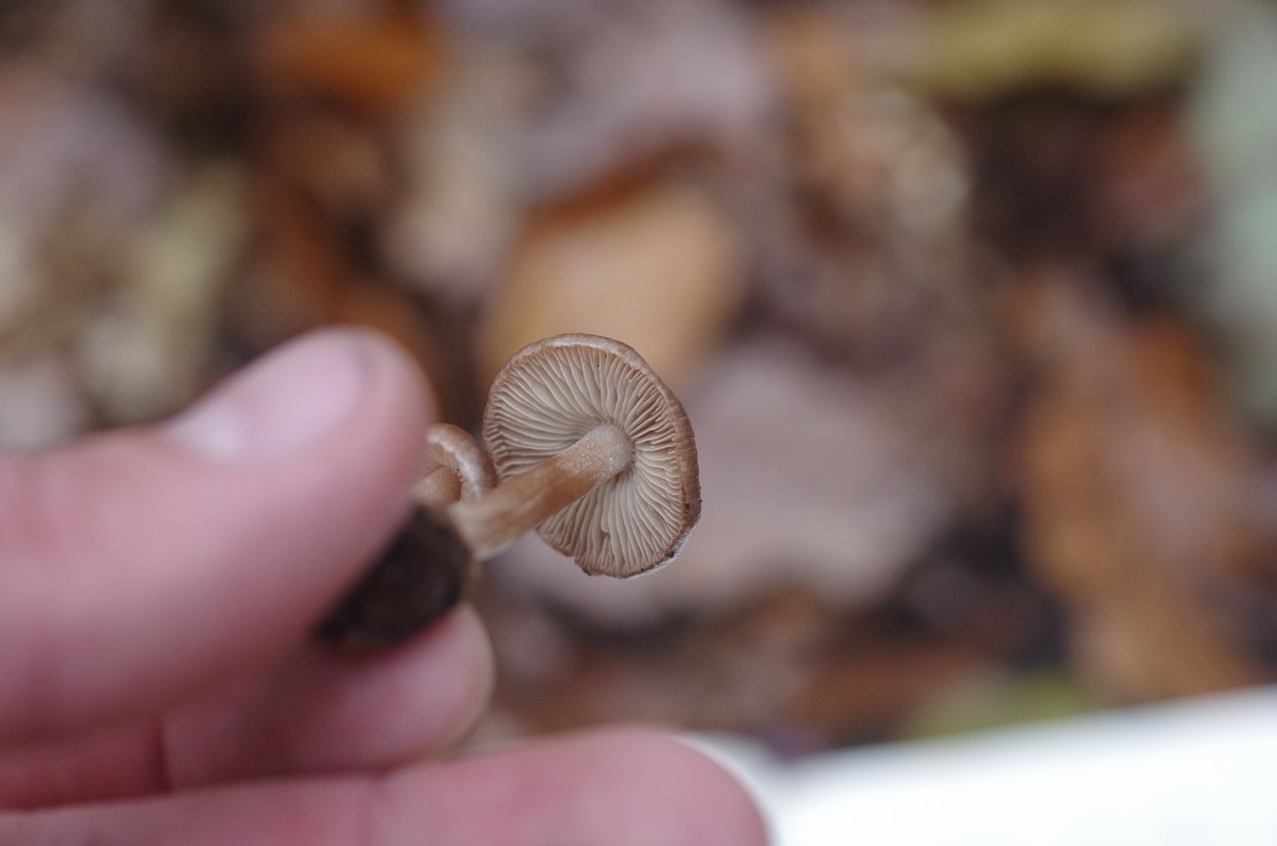 Makroskopisch: Mit verdickter Stielbasis. Die dunkle Stelle in der Mitte des Hutes ist vielleicht ein gutes Merkmal.