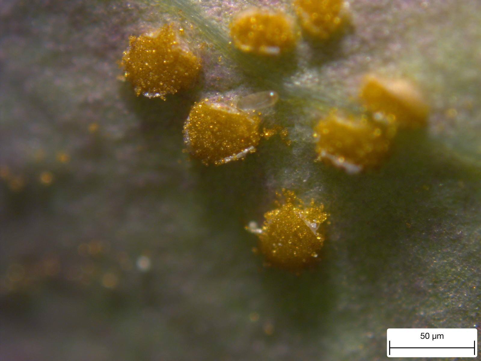 Auf den Blattoberseiten wachsen winzige weißliche Gebilde