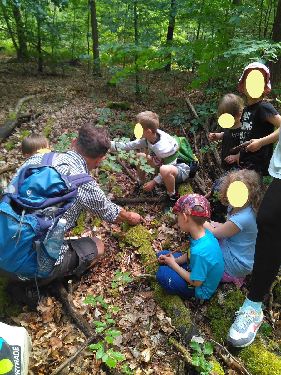 Für die Kinder gab es noch Bewegungsspiele, hier bin ich ein Fliegenpilz und die Kinder sind meine Pilzsporen und dürfen gleich durch den Wald "fliegen" um sich einen Baum zu suchen damit die Spore auskeimen und weiterwachsen kann: Thema Mykorrhiza