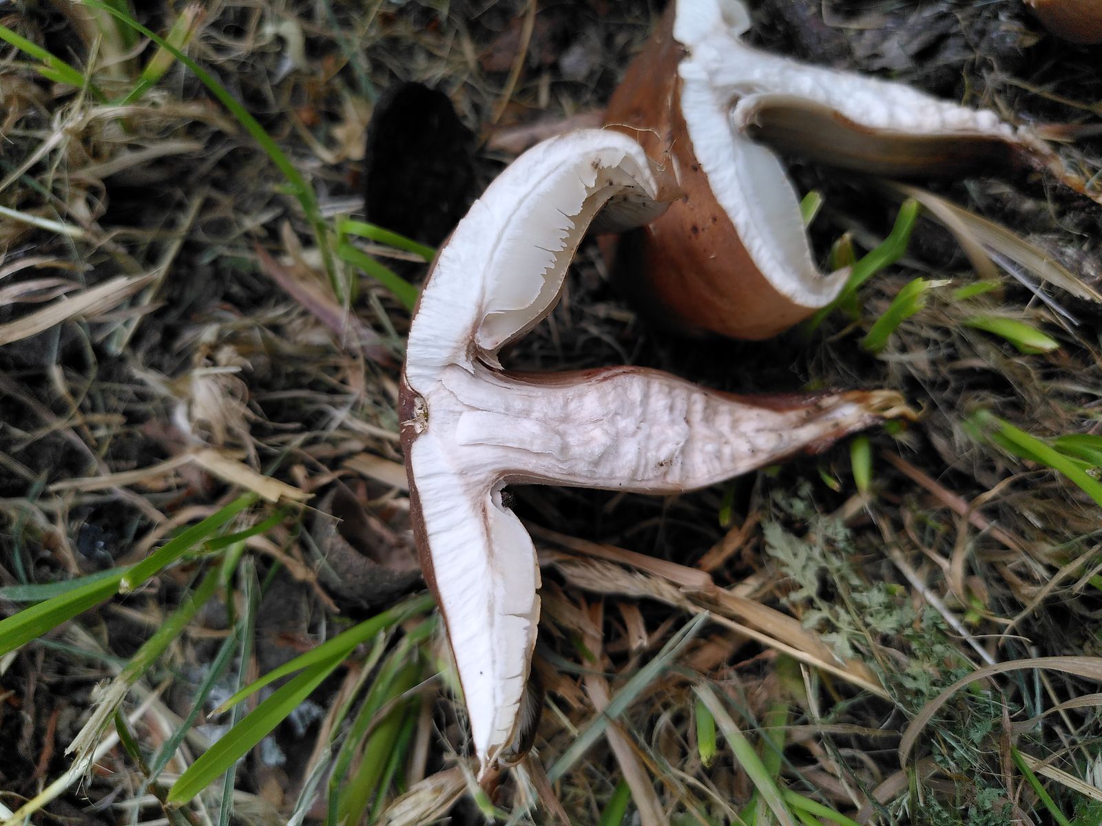 hat jemand eine Idee für diese Pilze? Wuchsen am Fuß einer Kastanie, Geruch unauffällig. Sehr markant hingegen ist der lange wurzelähnliche Stielfortsatz. Trotz dieses auffälligen Merkmals konnte ich in meinem Pilzbuch nichts passendes finden. Hat jemand Ideen?