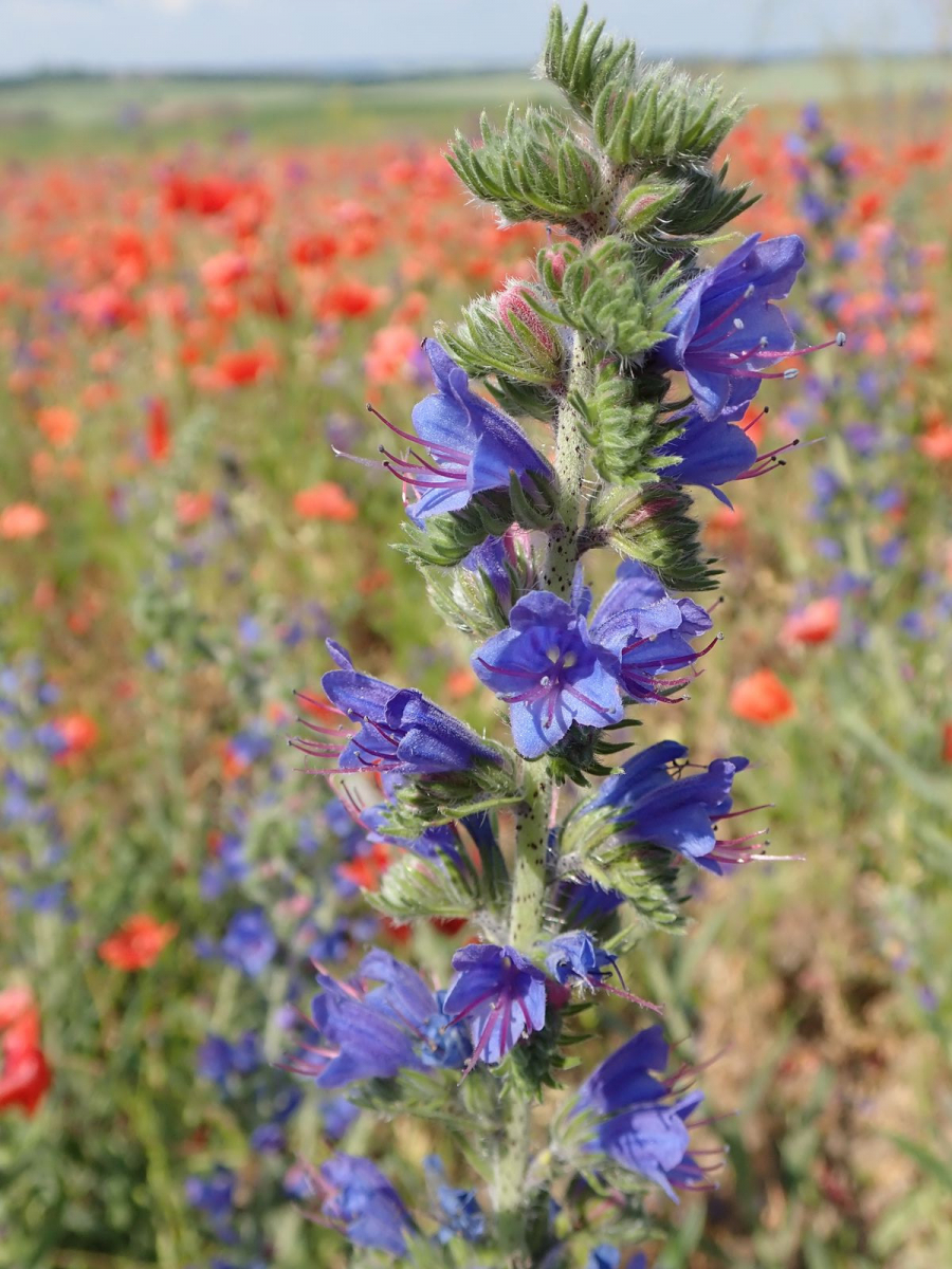 Botanisch ist das Gebiet allemal interessant. Neben einer leider schon abgeblühten Orobanche entdeckten wir wohl auf einer ehemaligen Ackerfläche einige Kornraden.