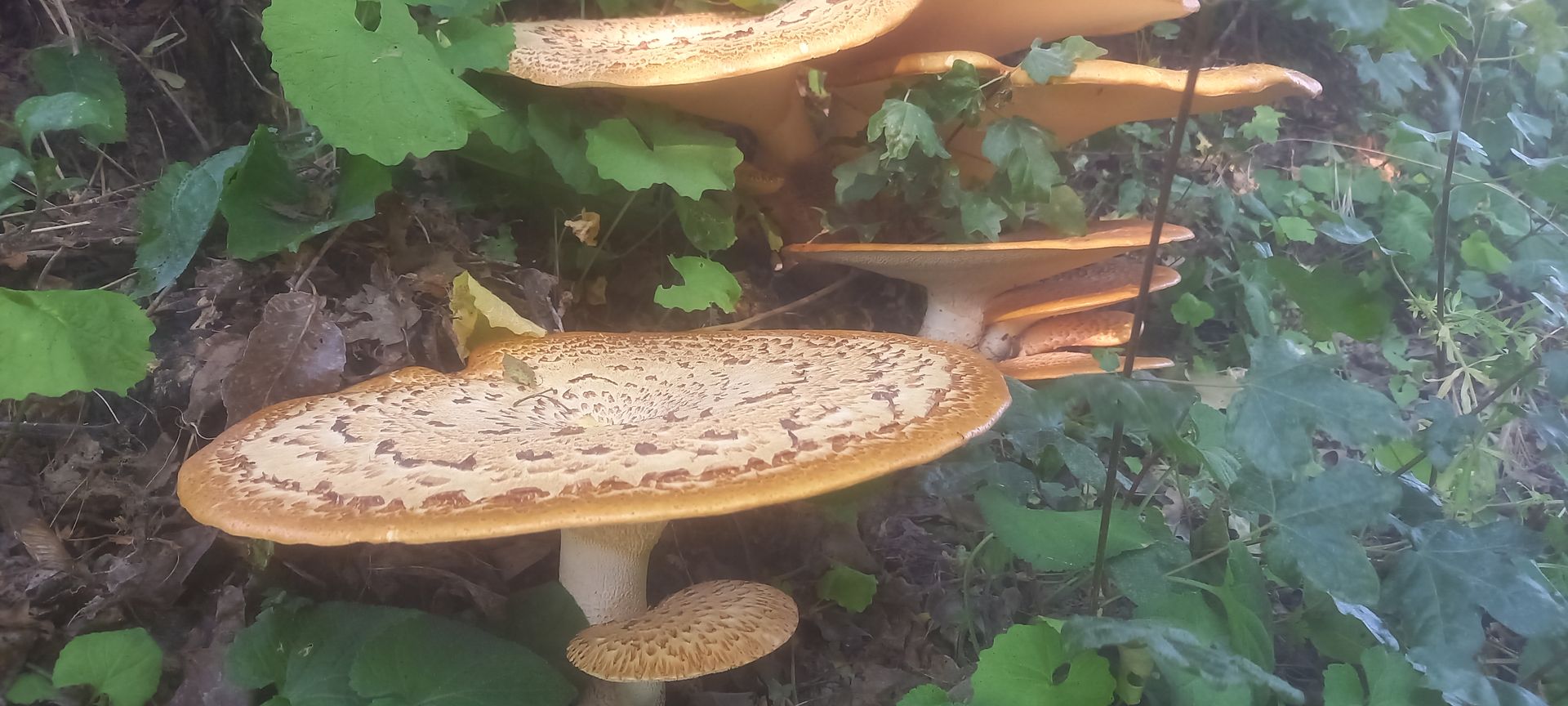 Polyporus tuberaster habe ich noch nie so dachziegelartig wachsen sehen. Der wächst meist einzeln und ist auch kleiner als der Schuppige.