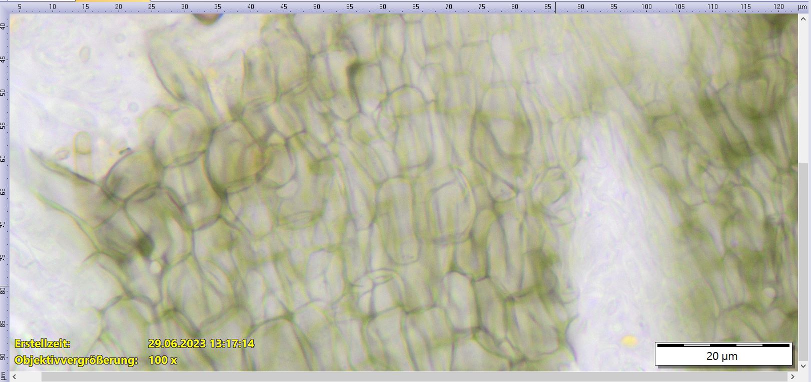 Heute habe ich noch weitere Untersuchungen gemacht -> 1x Ectal Excipulum in Wasser und in KOH, dabei kann man beobachten wie sich das ganze grünlich verfärbt.