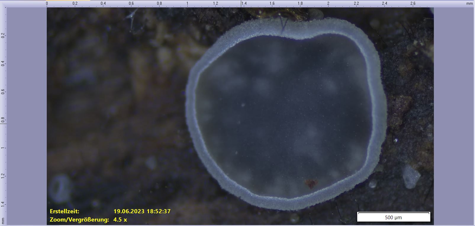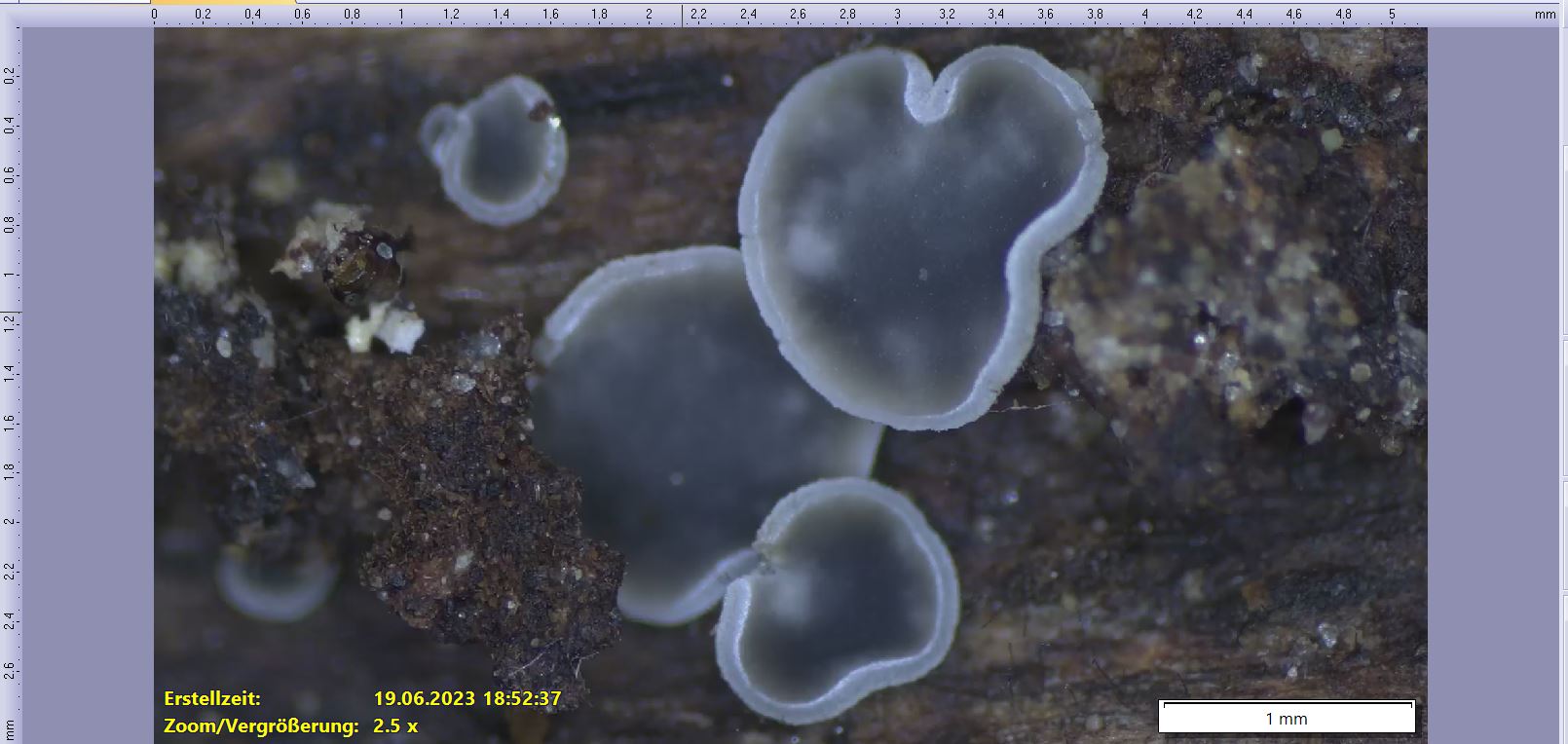 Substrat -> altes morsches Laubholz, am Boden aufliegend -> FK zum Boden ausgerichtet.