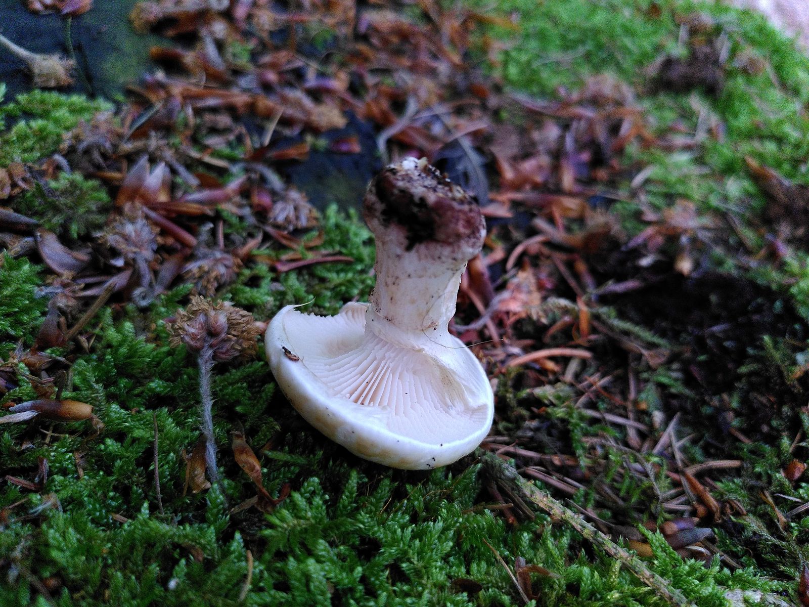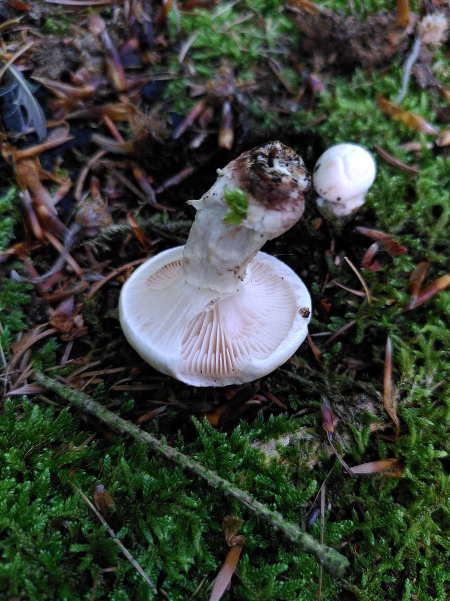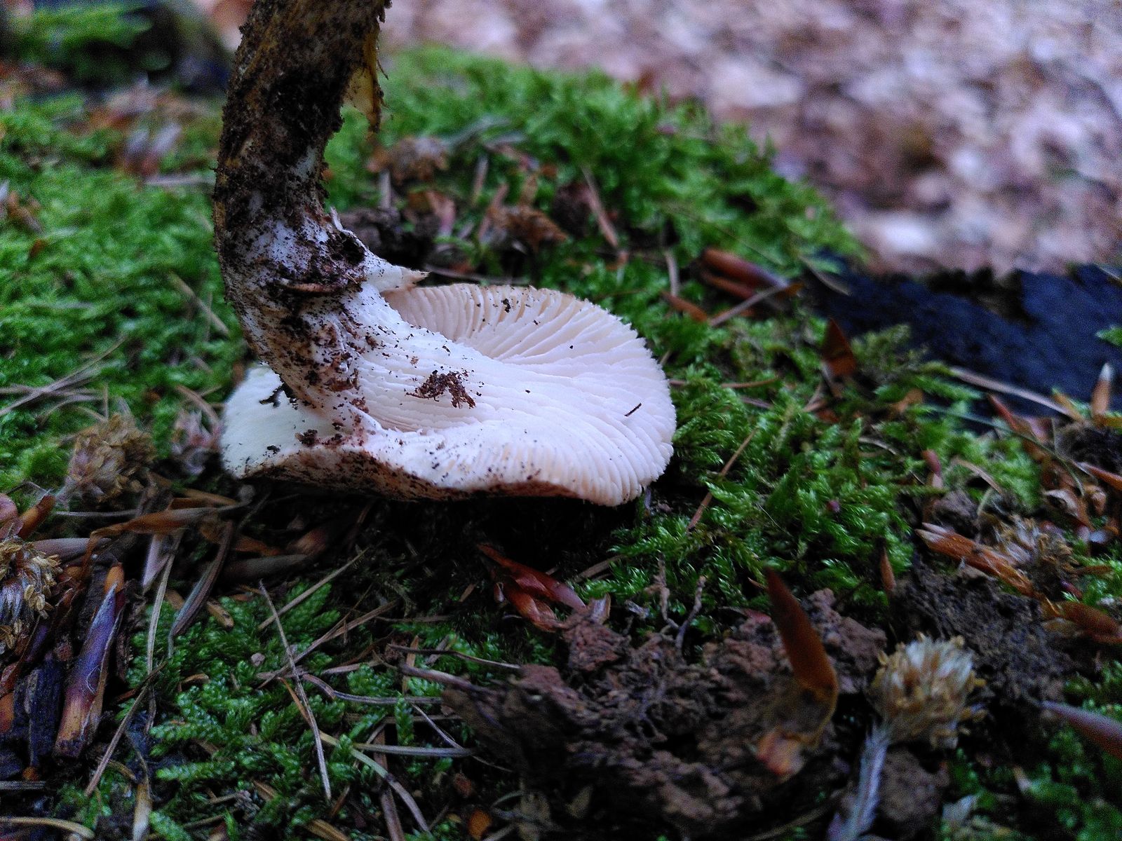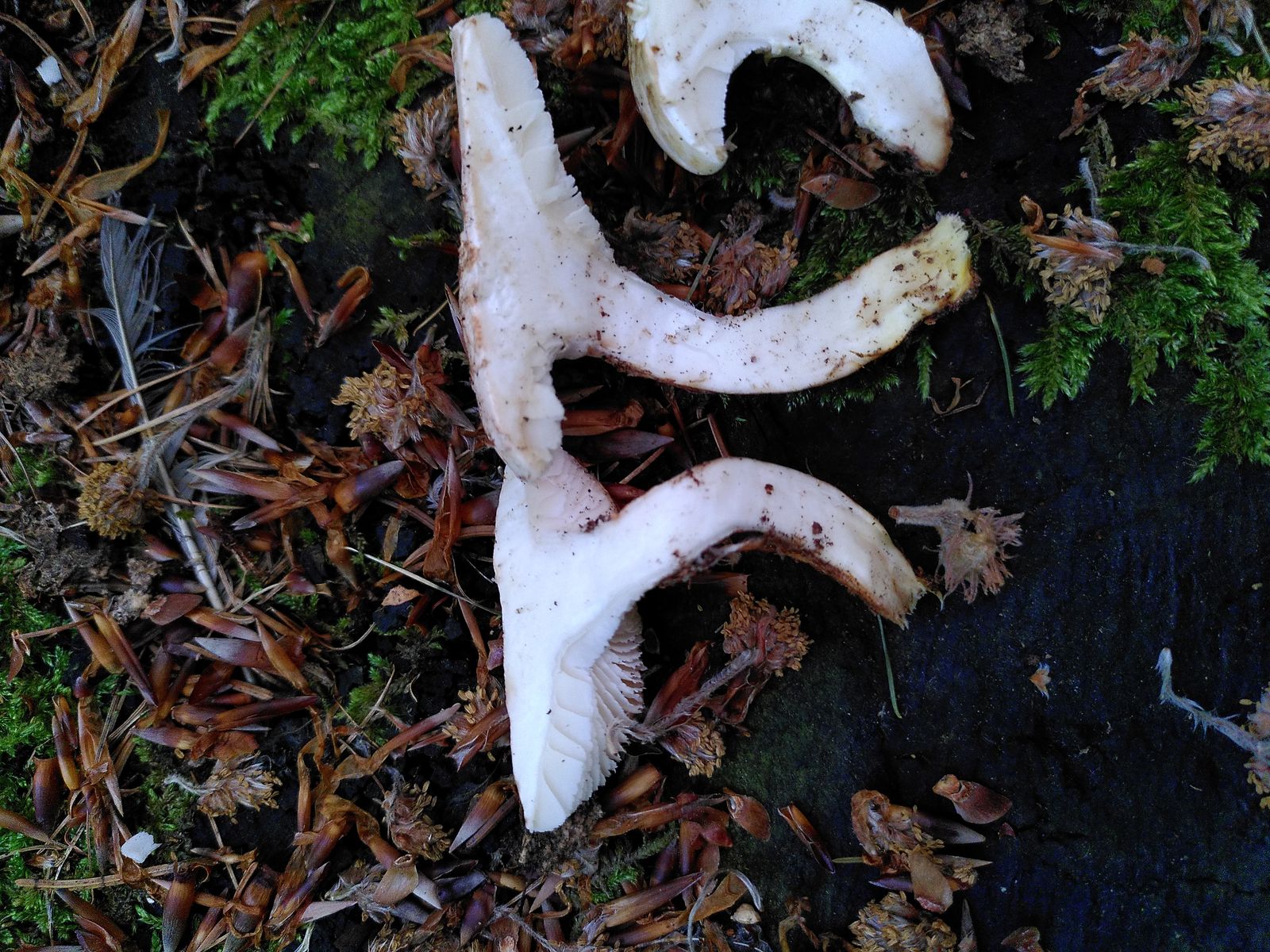 Lamellen: weiß, herablaufend, Schneiden gesägt
