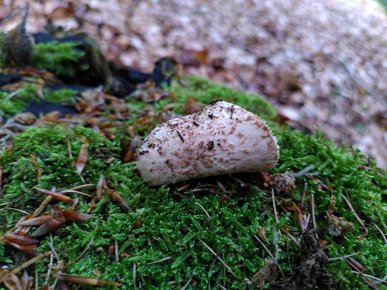 Hut: weiß, grob weiß- bis braunschuppig, trocken
