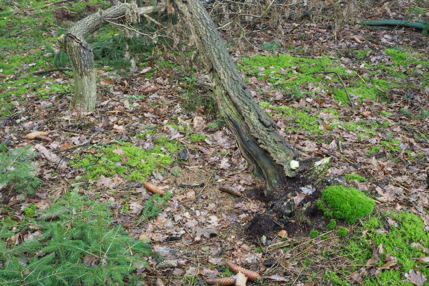 Bild 1: Die Fundstelle, entwurzelte junge Eiche