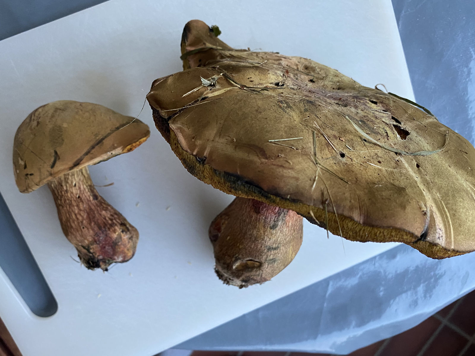 Lediglich der letzte ist einer der xerocomoiden Röhrlinge ("Filzröhrlinge"). Vermutlich ein Rotfußröhrling (Xerocomellus spec.).