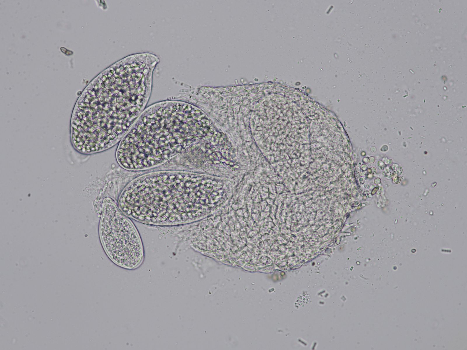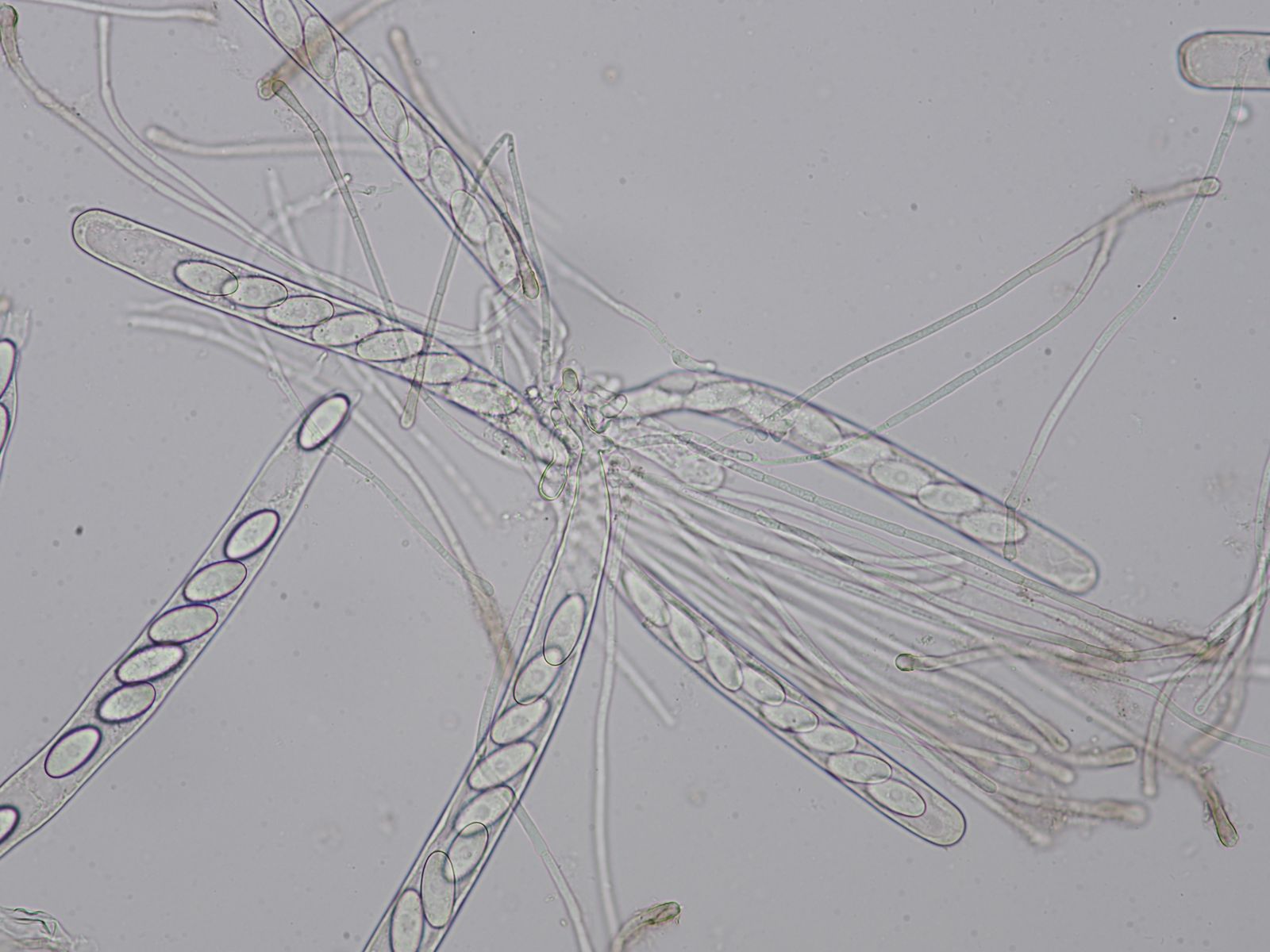 Daraus schließe ich, dass die Art wohl 64-sporig ist, da aufgrund der unterschiedlichen Ebenen so gut wie nie alle Sporen sichtbar sind.