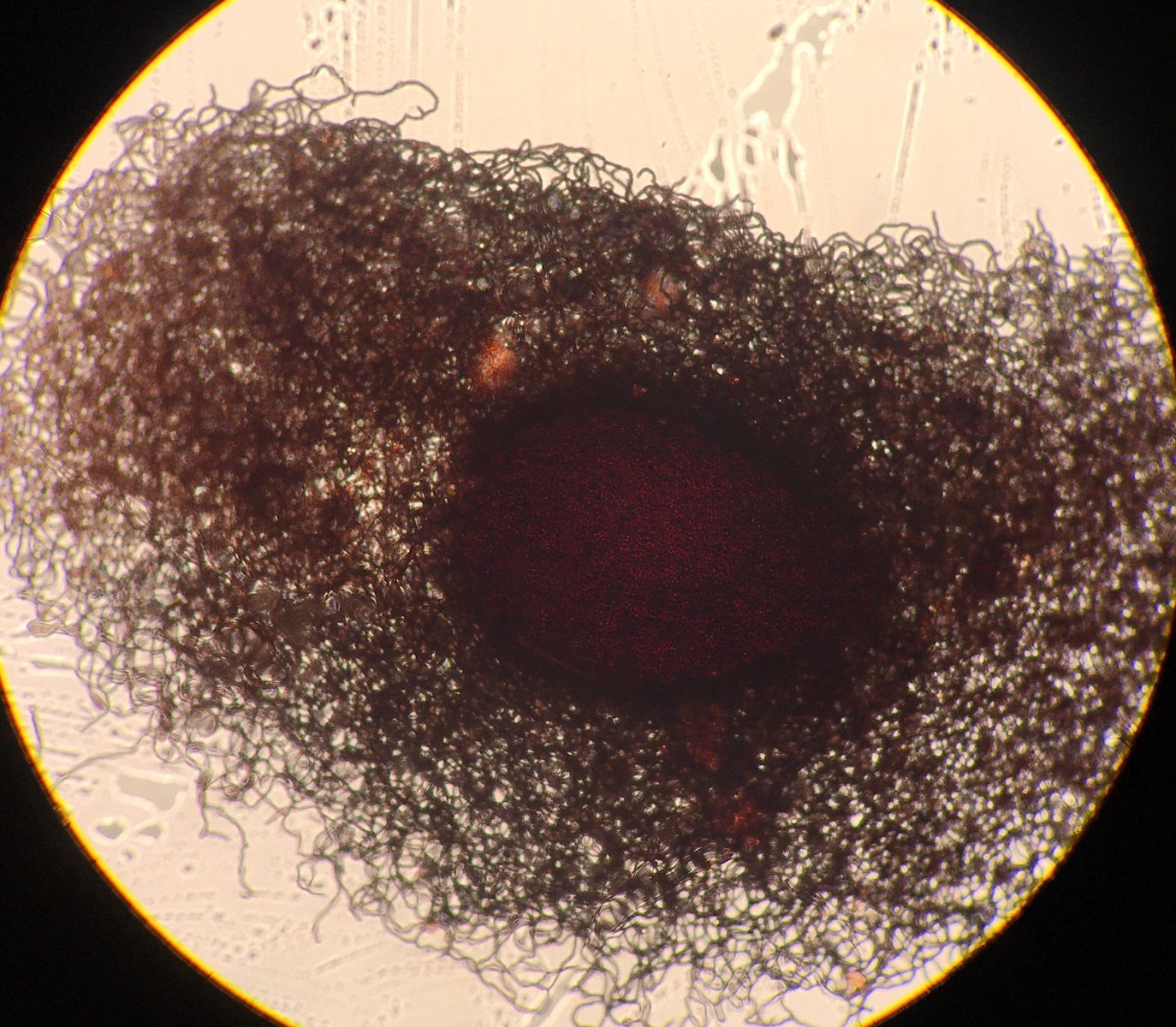 Der 2. Fund ist auch etwas entwicklungsgestört (daher die "Käppchen"), hat scheinbar einen nicht so tiefen Becher, das Capillitium ist grobmaschiger.