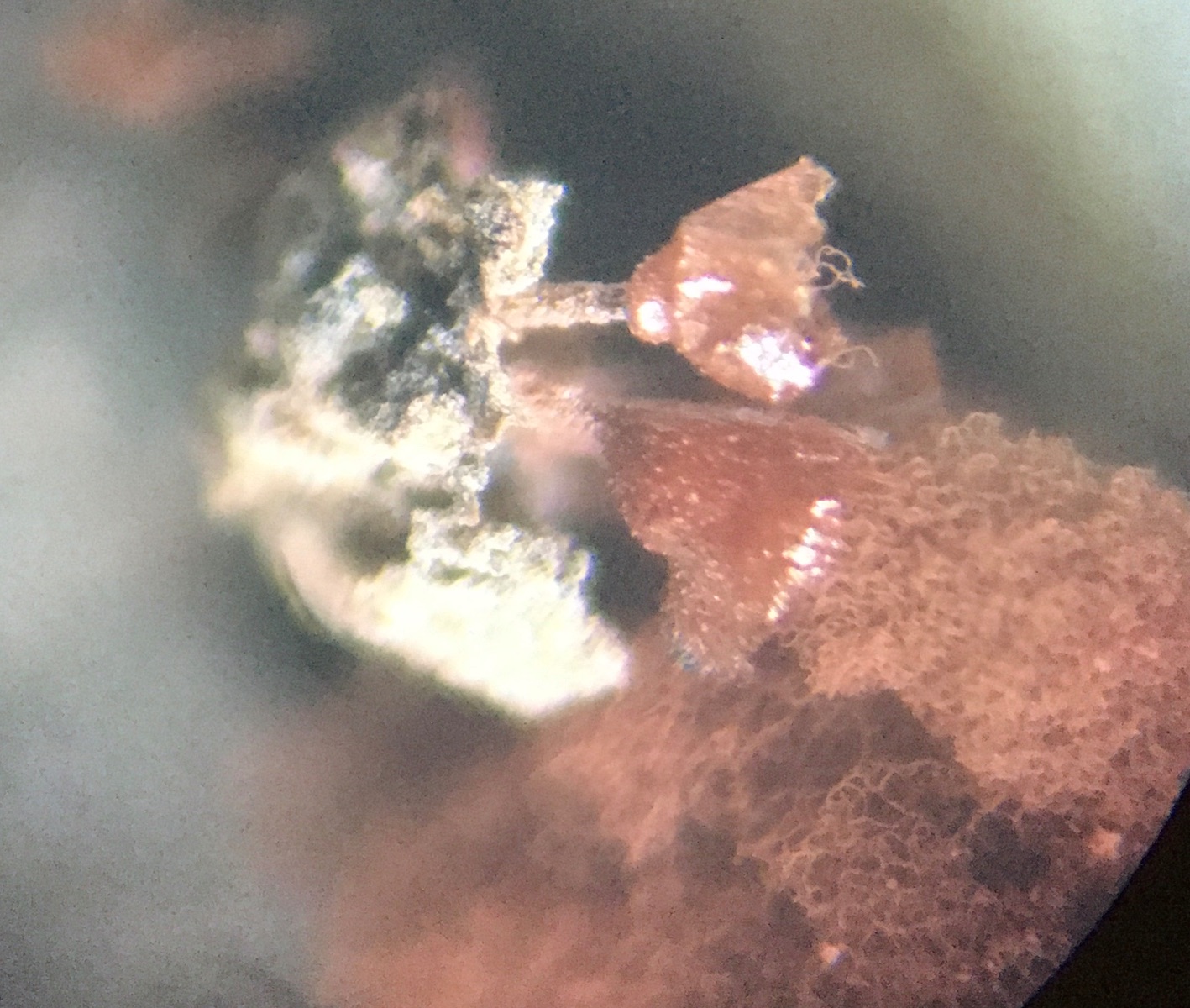 Das Capillitium war noch viel mehr abgewinkelt als auf diesem Foto, ich habe es etwas auseinandergezogen, um besser sehen zu können.