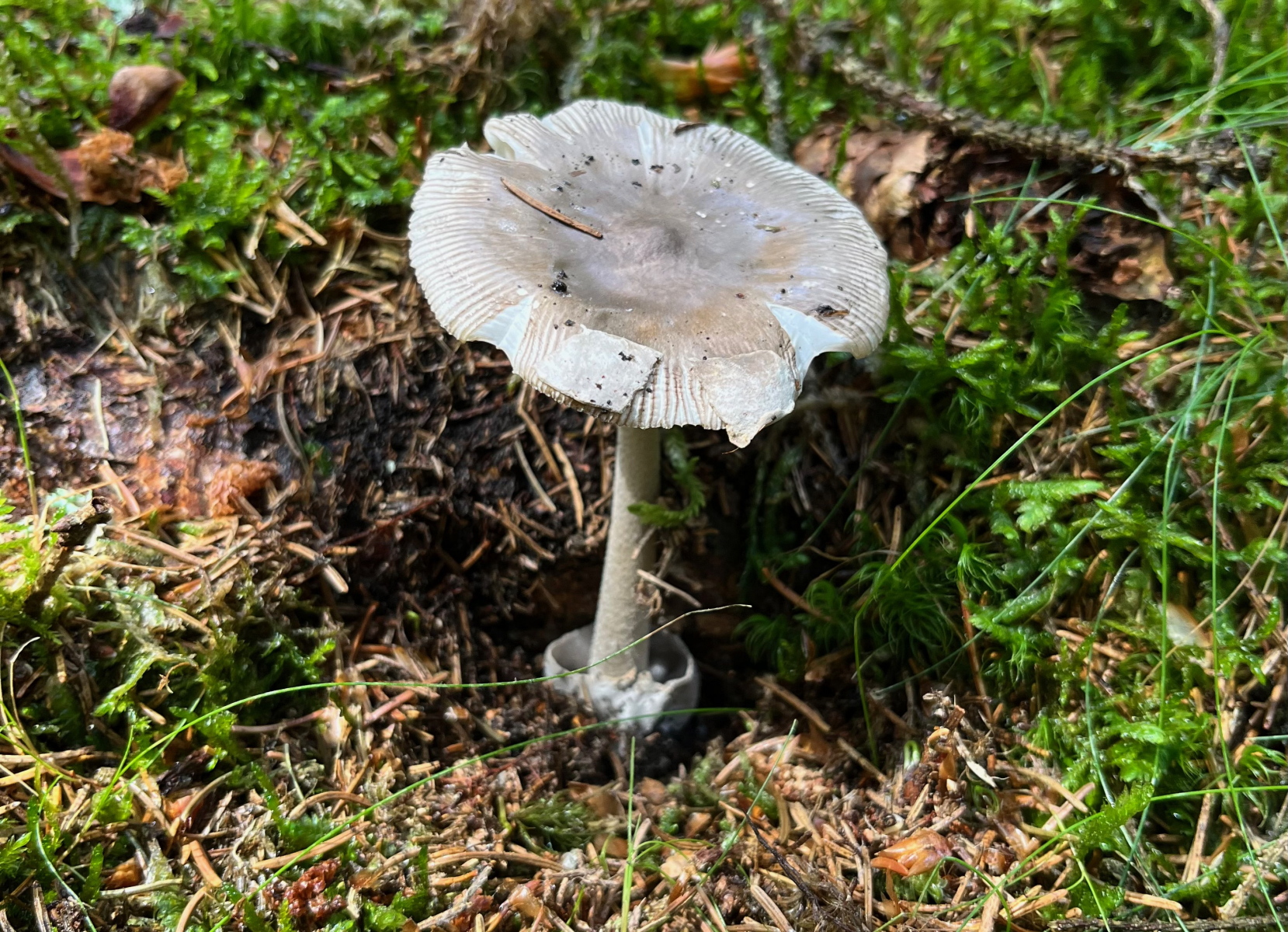 11. Und weil gestern Amanita-Tag war, noch dieser, nicht näher bestimmte Scheidenstreifling, der buchstäblich aus einer Bilderbuchhülle geschlüpft ist.