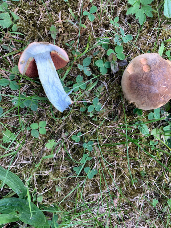 die Amaniten strecken sich nur ganz leicht, aber ich denke Hannes2 hat da sehr gut geraten, das könnte gut Amanita strobiliformis werden. Die sollen in England gar nicht so häufig sein. Vielleicht ists denen gerade doch ein bisschen zu trocken, morgen sollen 18 Liter runterkommen, mal schauen ob sich da noch was tut.