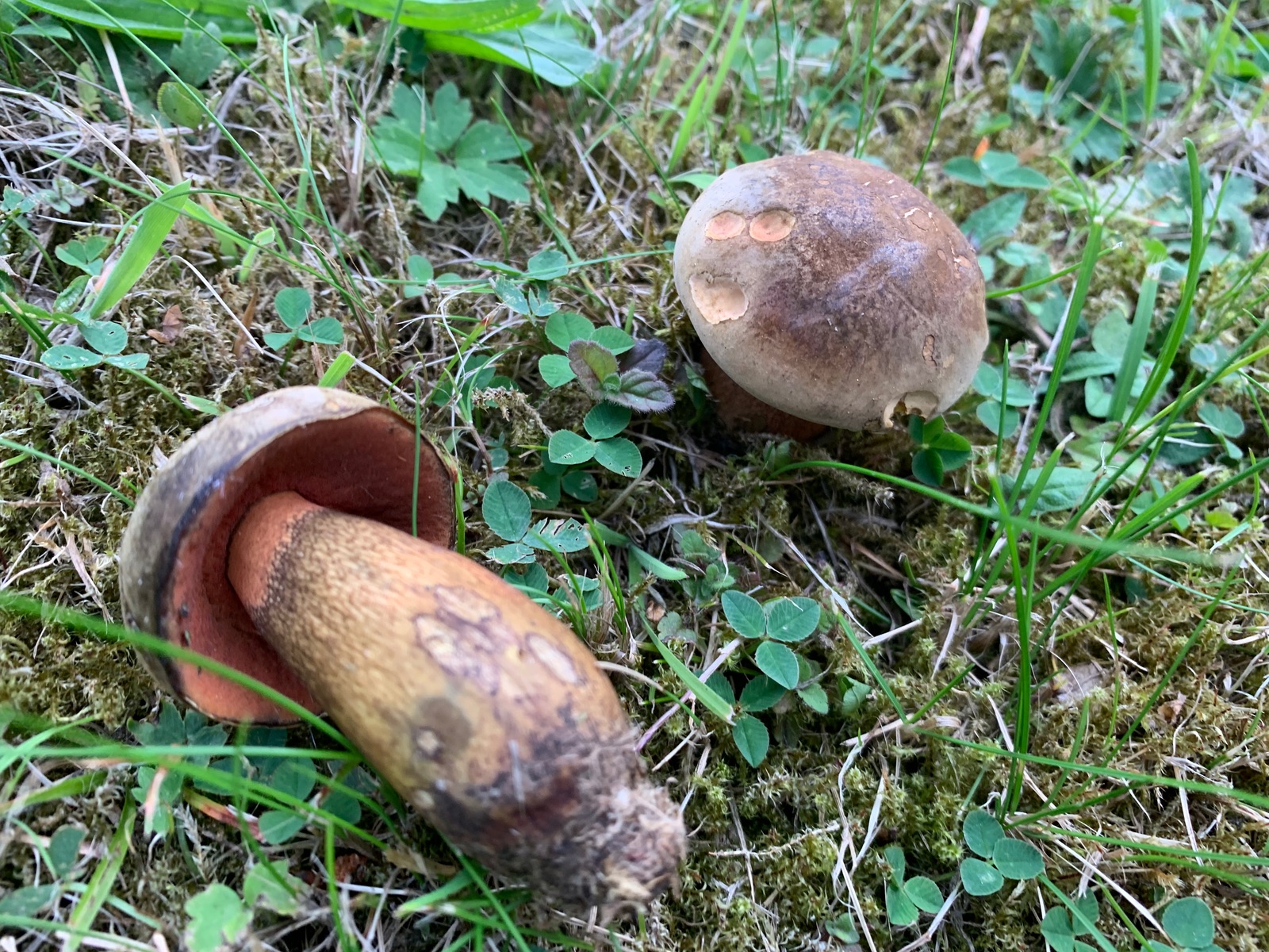 die Amaniten strecken sich nur ganz leicht, aber ich denke Hannes2 hat da sehr gut geraten, das könnte gut Amanita strobiliformis werden. Die sollen in England gar nicht so häufig sein. Vielleicht ists denen gerade doch ein bisschen zu trocken, morgen sollen 18 Liter runterkommen, mal schauen ob sich da noch was tut.