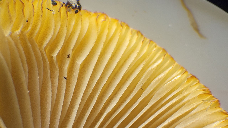 Lamellen eng, schmal und lang auffallend hell für die Gattung