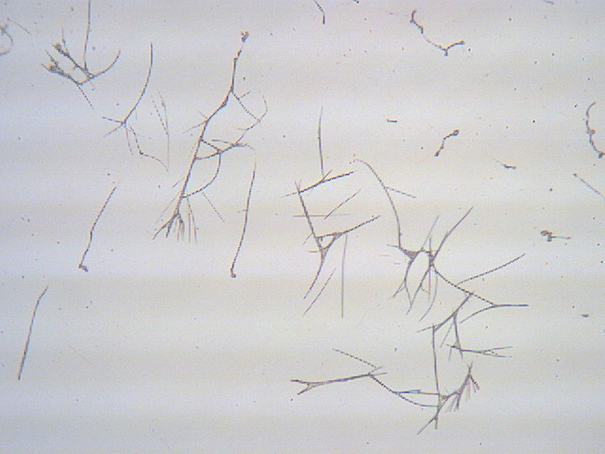 Eine Reaktion mit Ammoniak zeigt rasch Kristalle