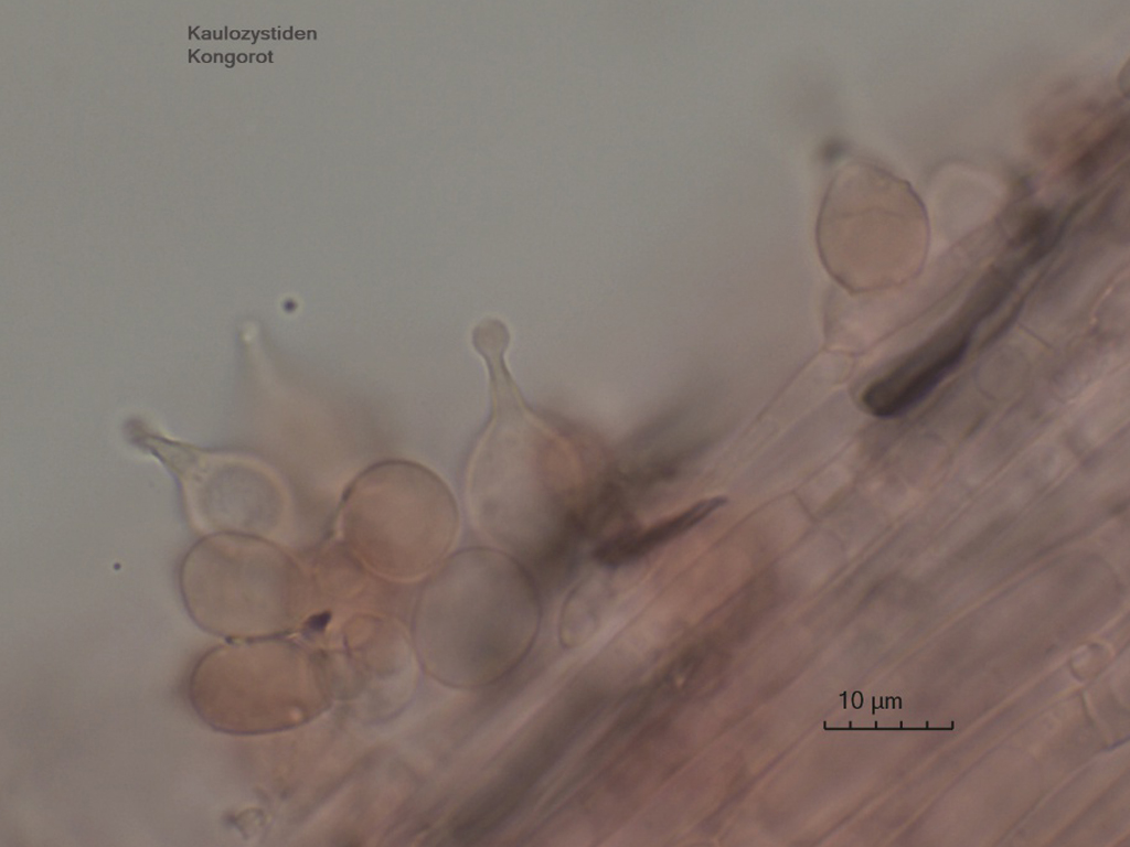 Die Pileozystiden sind auffallend schlank, "kleinköpfig" und typisch lecythiform