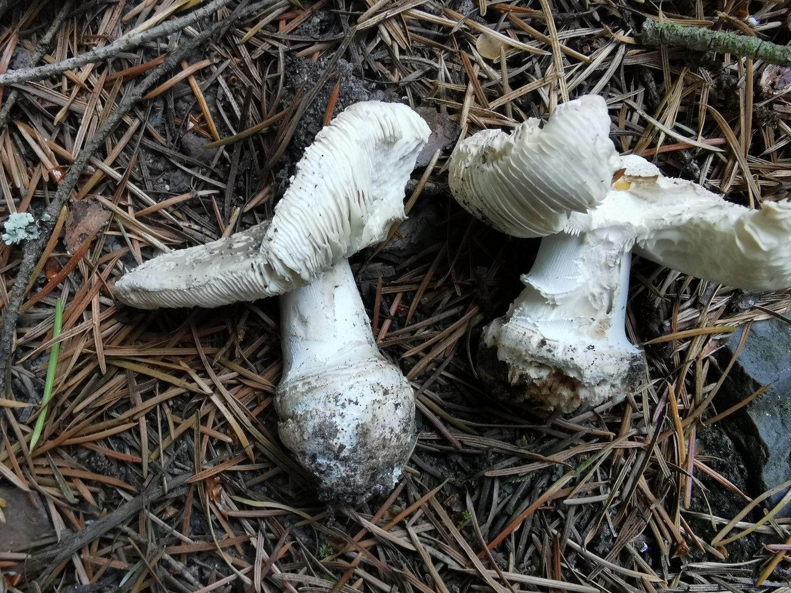 ich habe auf 550hm im. Fichtenwald, der vollkommen Perpilz belagert war, folgenden weißhütigen Amanita-Vertreter gefunden. Der Hut wirkt auf dem Bild rötlich aber die Hüte waren tatsächlich eher weißlich. Der Ring war eindeutig gerieft und klebte am Stiel und war glänzend(ich kann es selbst kaum glauben Aber so war es) Geruch eher pilzig, Fraßgänge unten rötlich was klar auf Perpilz Variation schließen lassen würde, aber die Knolle war gerandet. Ich bin ratlos. Habt ihr eine Idee? Ich gehe vonPerlpilz aus, aber irgendwie sah er irritierend anders aus.