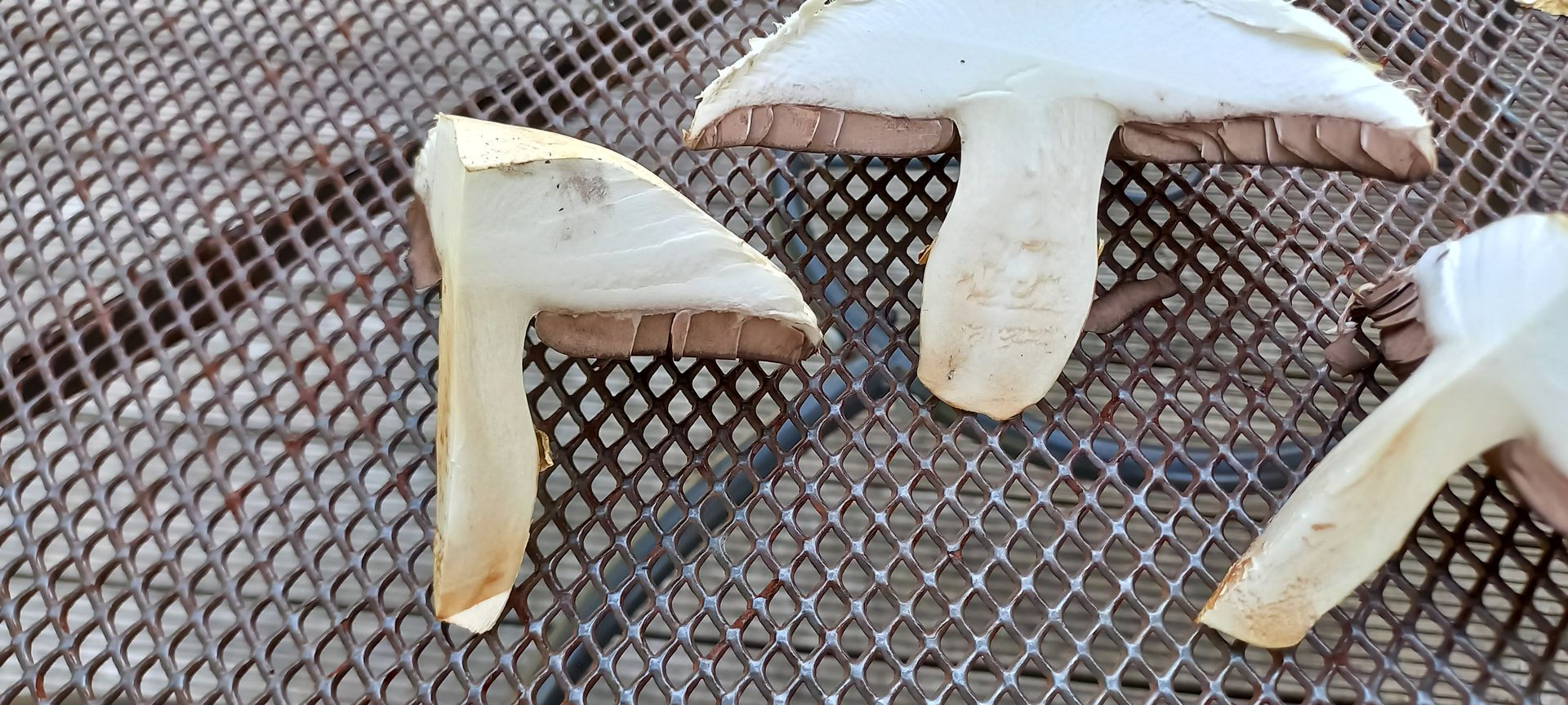 Auf der Hutdeckschicht sieht man bereits ein Gilbung, und das diese wahrscheinlich durch die Trockenheit einreist.