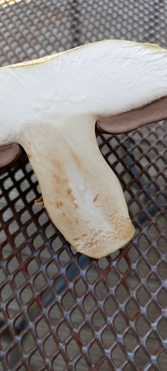 Auf der Hutdeckschicht sieht man bereits ein Gilbung, und das diese wahrscheinlich durch die Trockenheit einreist.