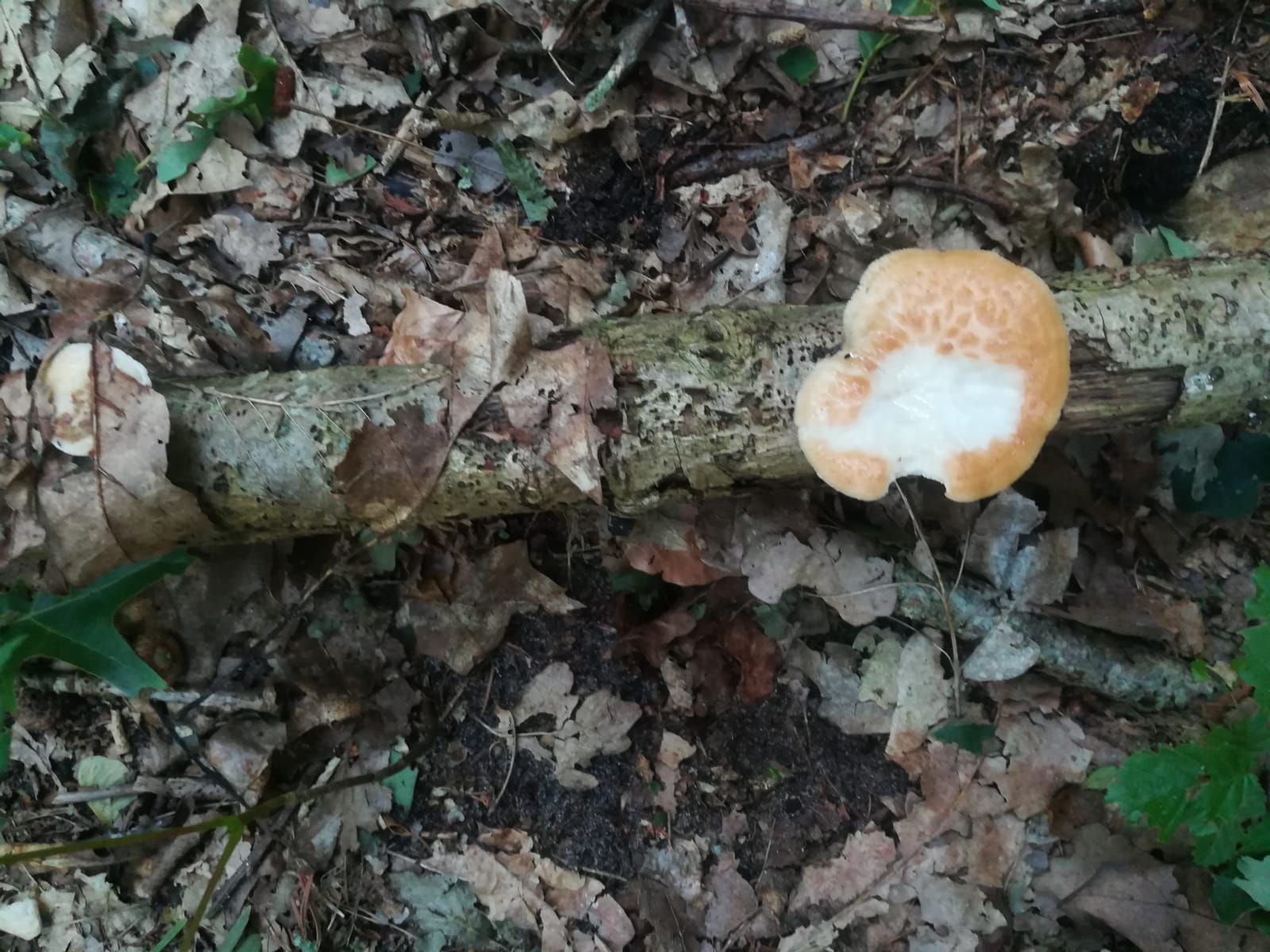 Einen Sklerotienporling fand ich noch: (vielleicht auch der Schuppige, der Stiel war nicht zentral angewachsen, aber er war noch sehr klein.)