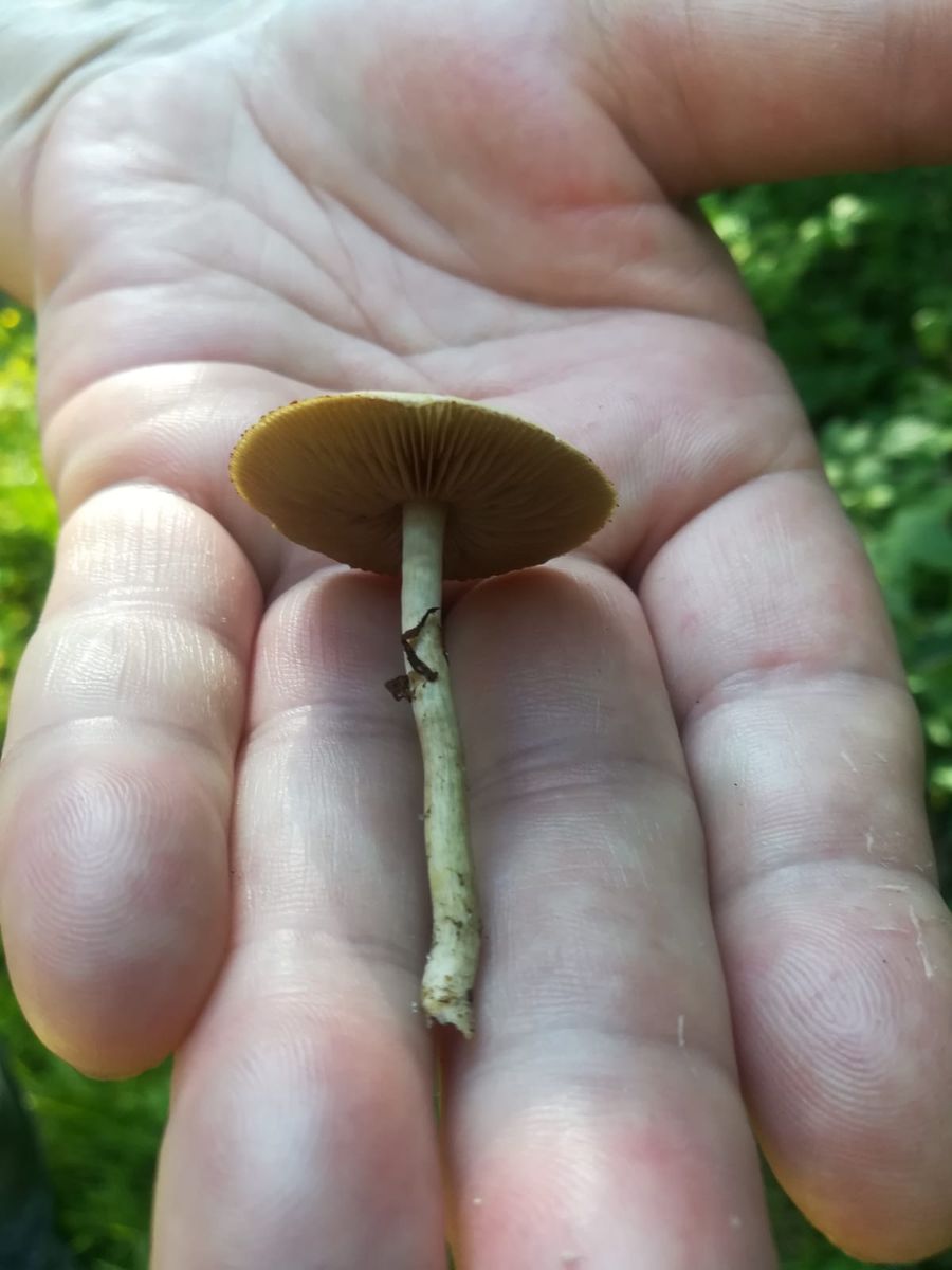 Etwas weiter wartete der erste kleine Giftpilz (denke ich). Ich tippe hier auf den Rotbräunlichen Glockenschirmling?