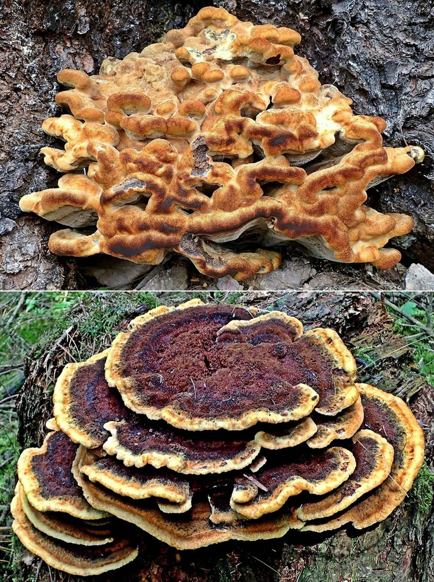 die obigen jungen Kiefern-Braunporlinge haben sich rasant entwickelt und sehen 8 Tage später so aus: