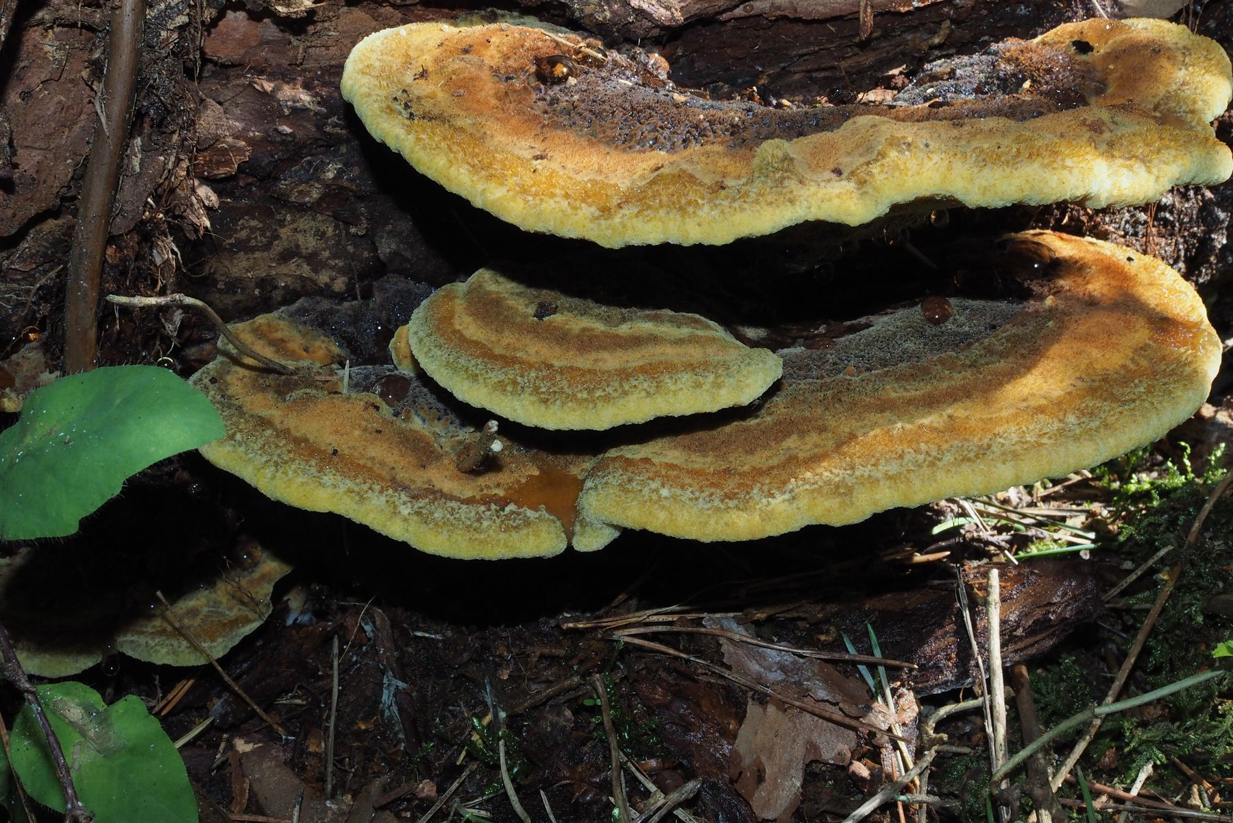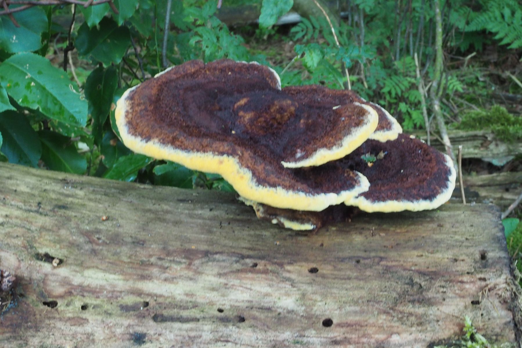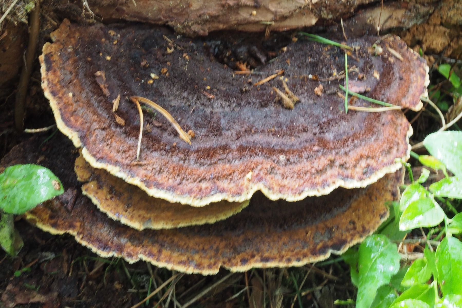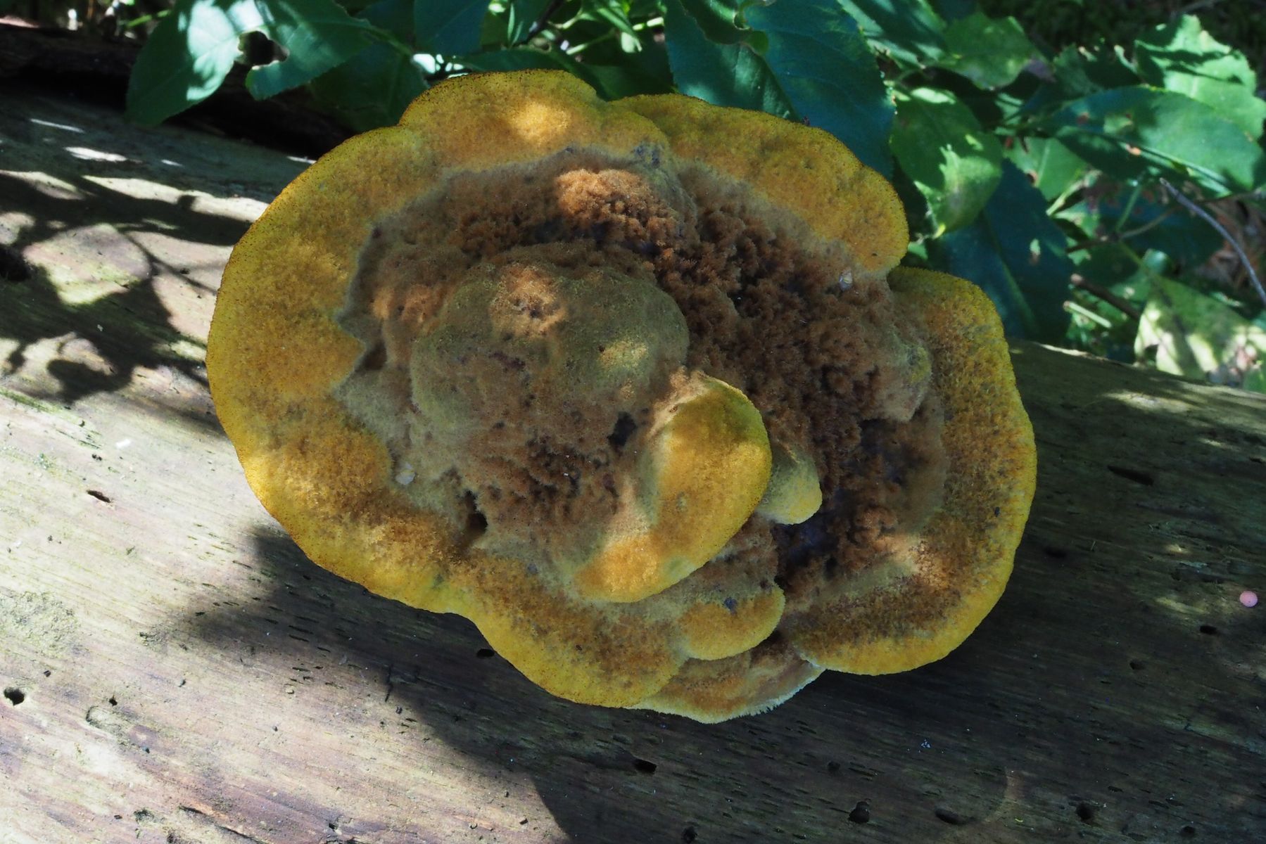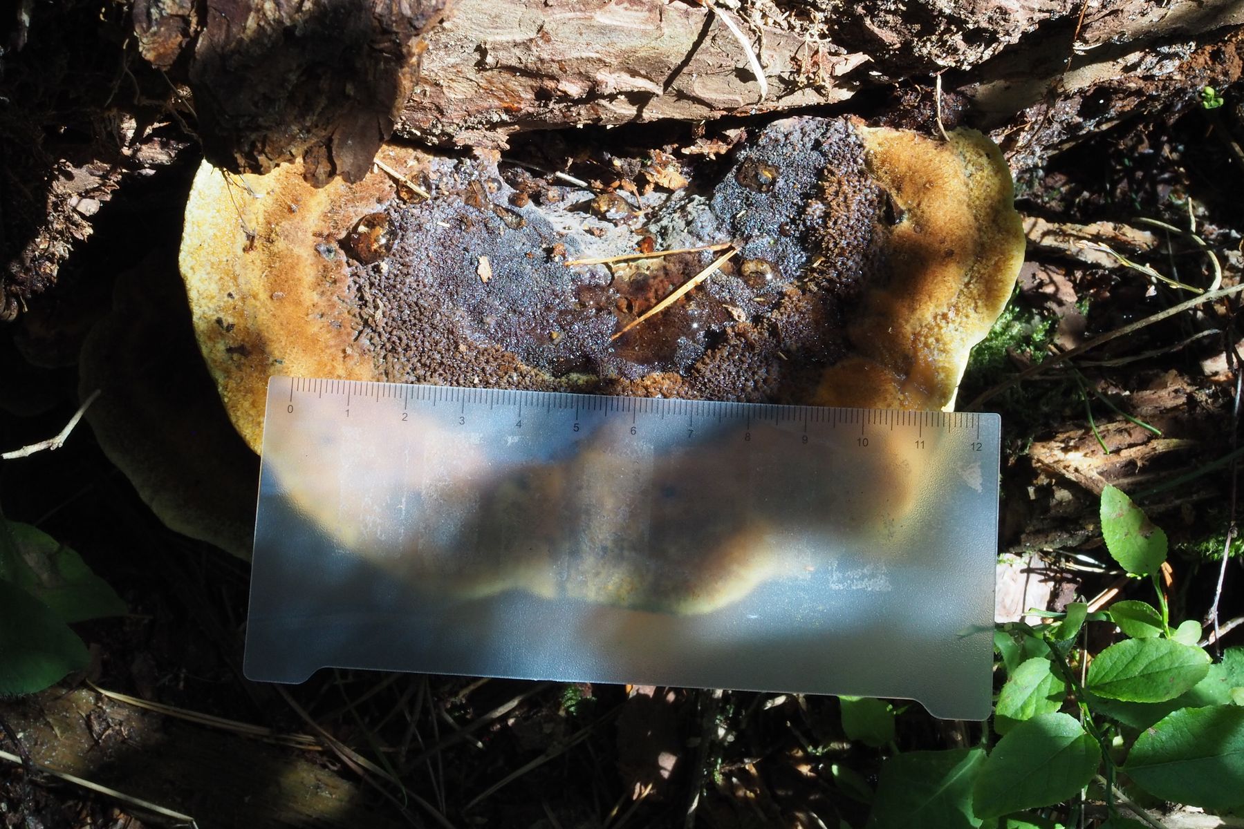 Anhand von Vergleichsbildern würde ich sagen, dass ich hier den Kiefern-Braunporling Phaeolus spadiceus gefunden habe.