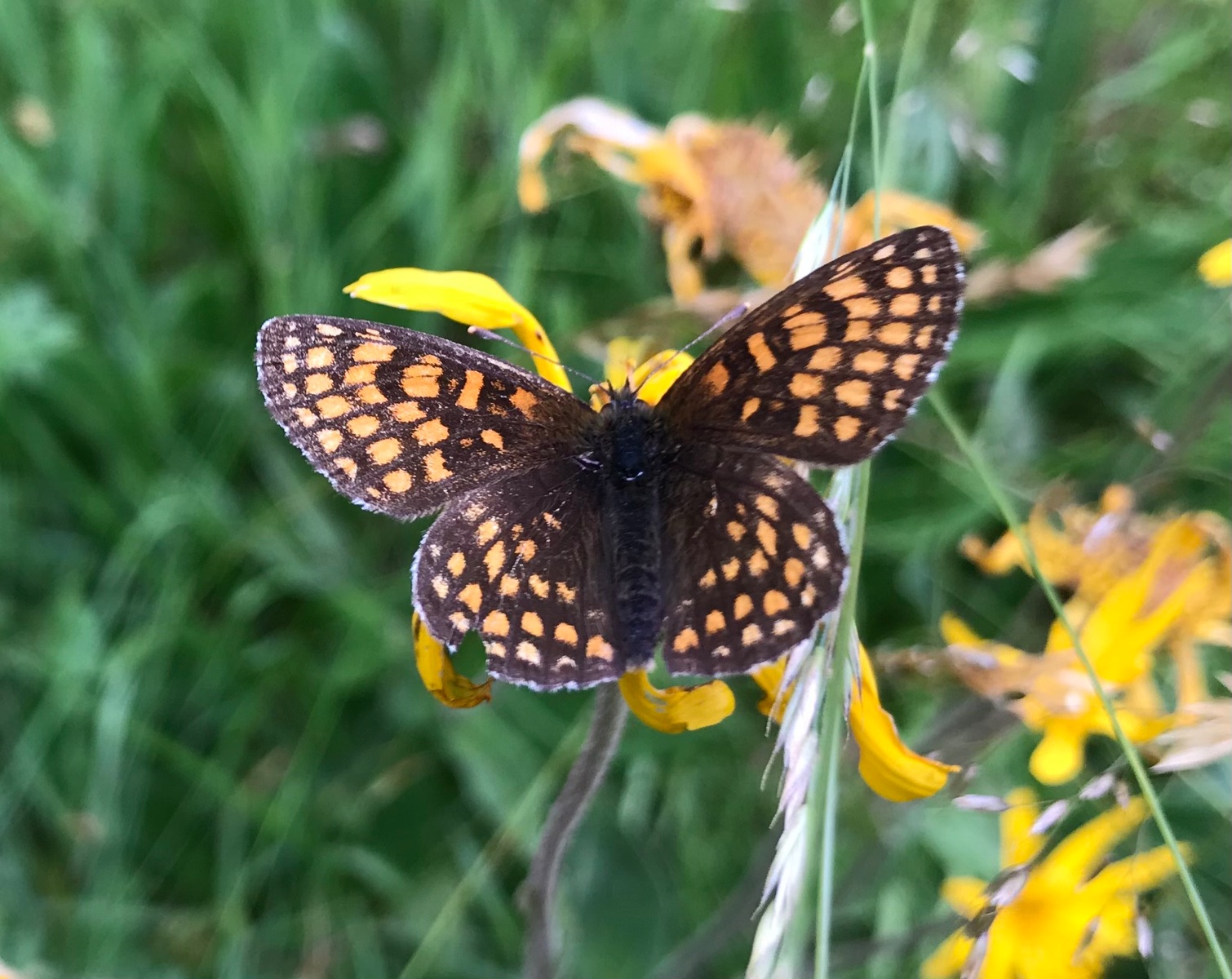 Leider habe ich die Unterseite der Flügel nicht fotografieren können. Ja bei meinen Betsimmungs-Versuchen bin ich auch auf den Wachtelweizen-Scheckenfalter gekommen. Aber die Alterntiven sahen schon alle sehr ähnlich, sodass ich mich nicht festlegen wollte. (Frei nach dem Pilzmotto: „das ist ein Aggregat“)