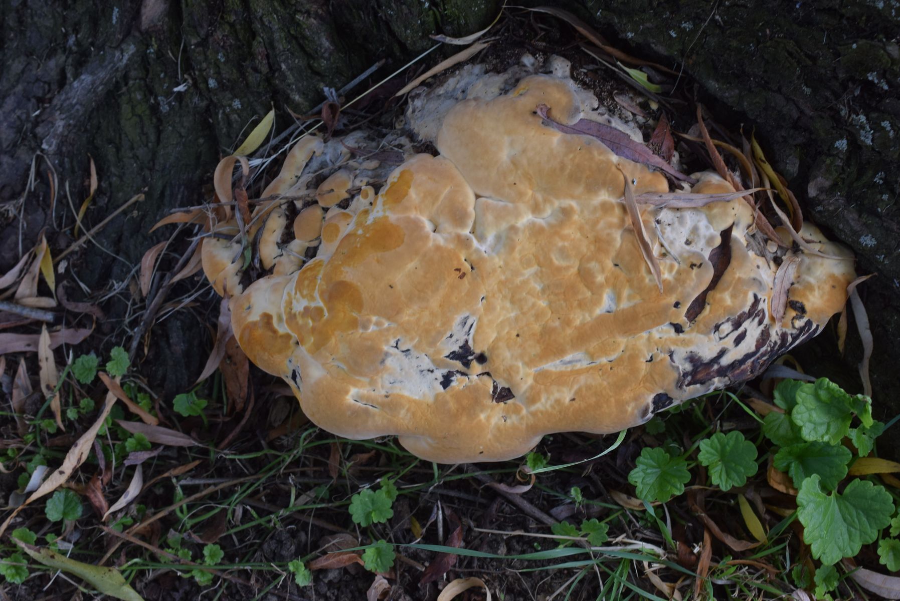 Warum den nicht ein -> Phaeolus schweinitzii / spadiceus, dieser kann auch auf Laubholz vorkommen. BG Andy