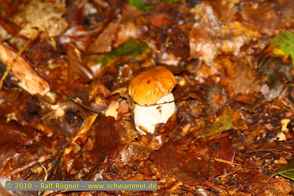 Sogleich fand ich tatsächlich den ersten Steinpilz. Und noch einen. Und noch einen, noch einer, noch einer, ein weiterer! Also, Korb abstellen, auf den Boden runtergehen und erst einmal in alle Richtungen spähen: ich stand mitten in einem Feld aus Steinpilzen!