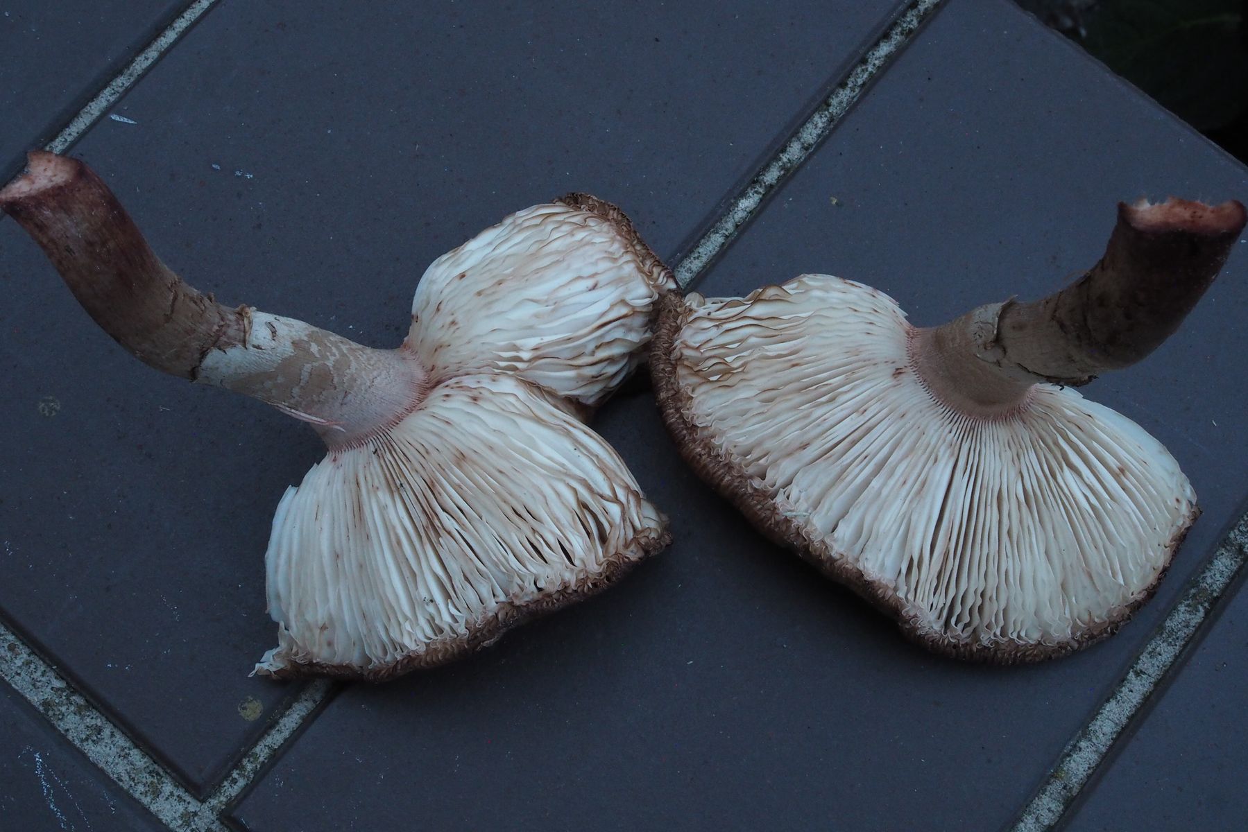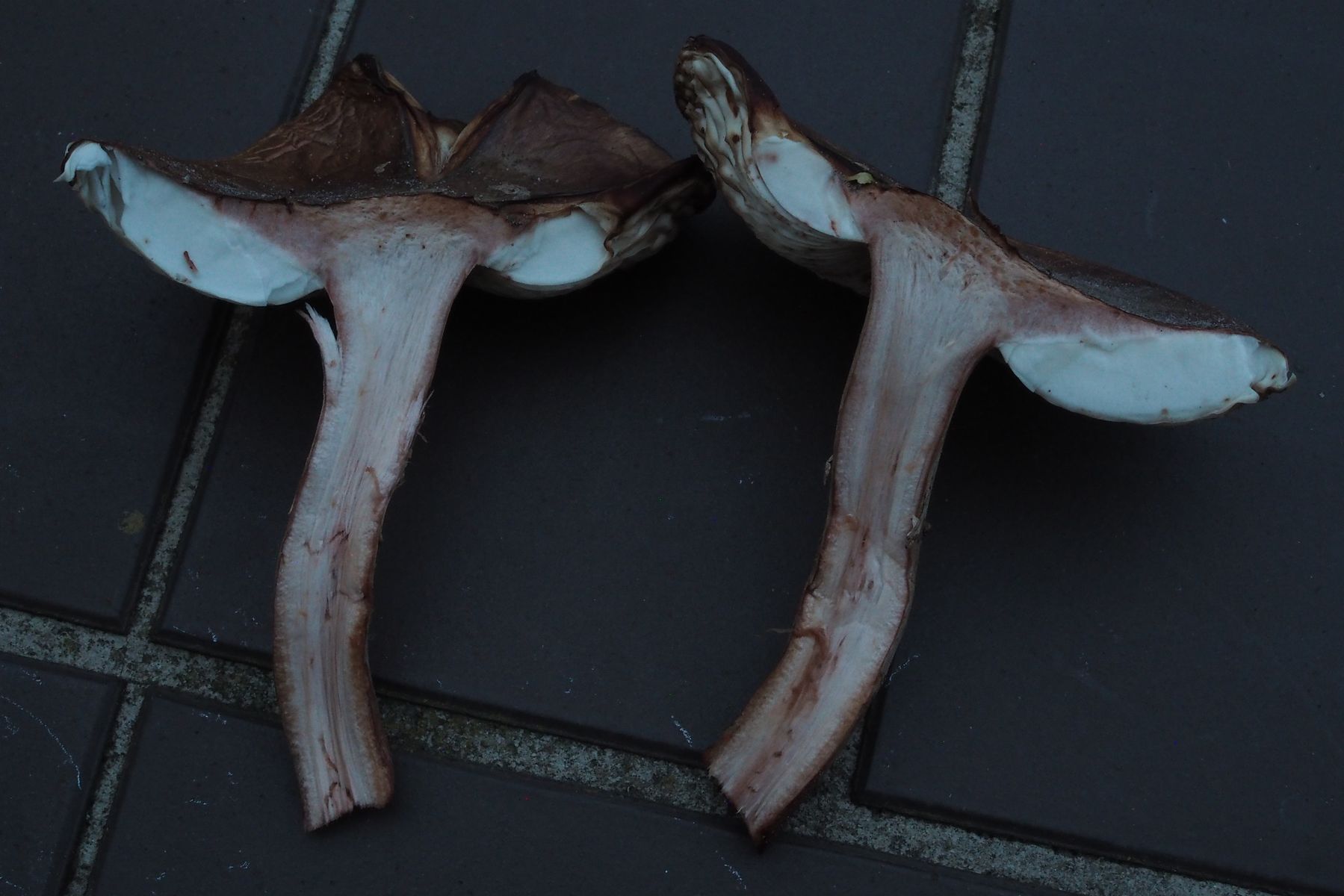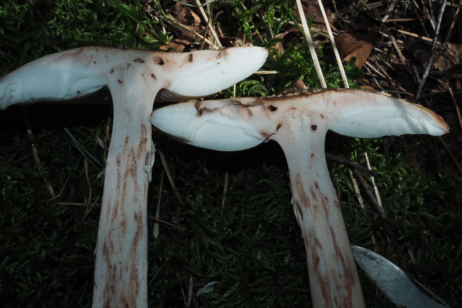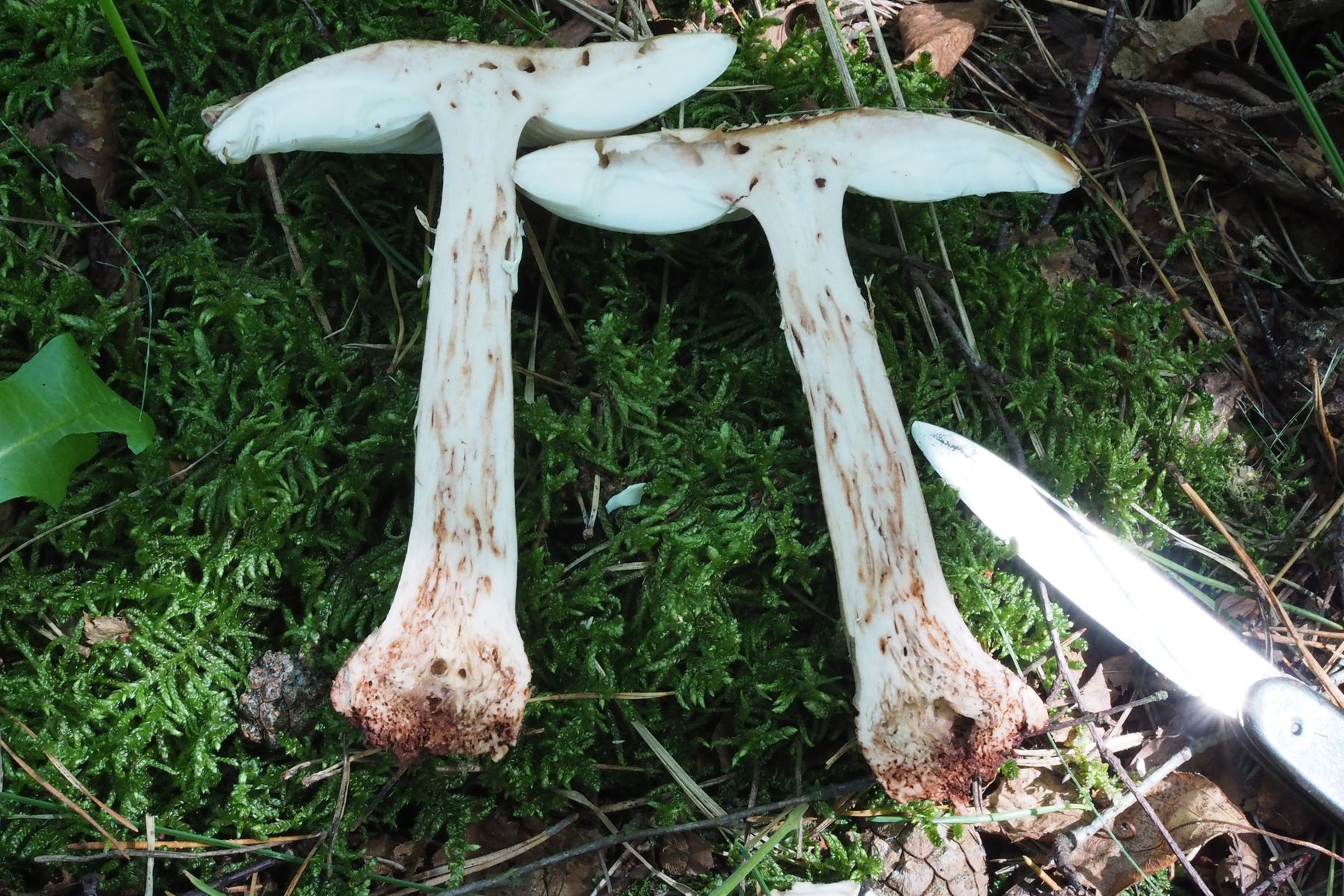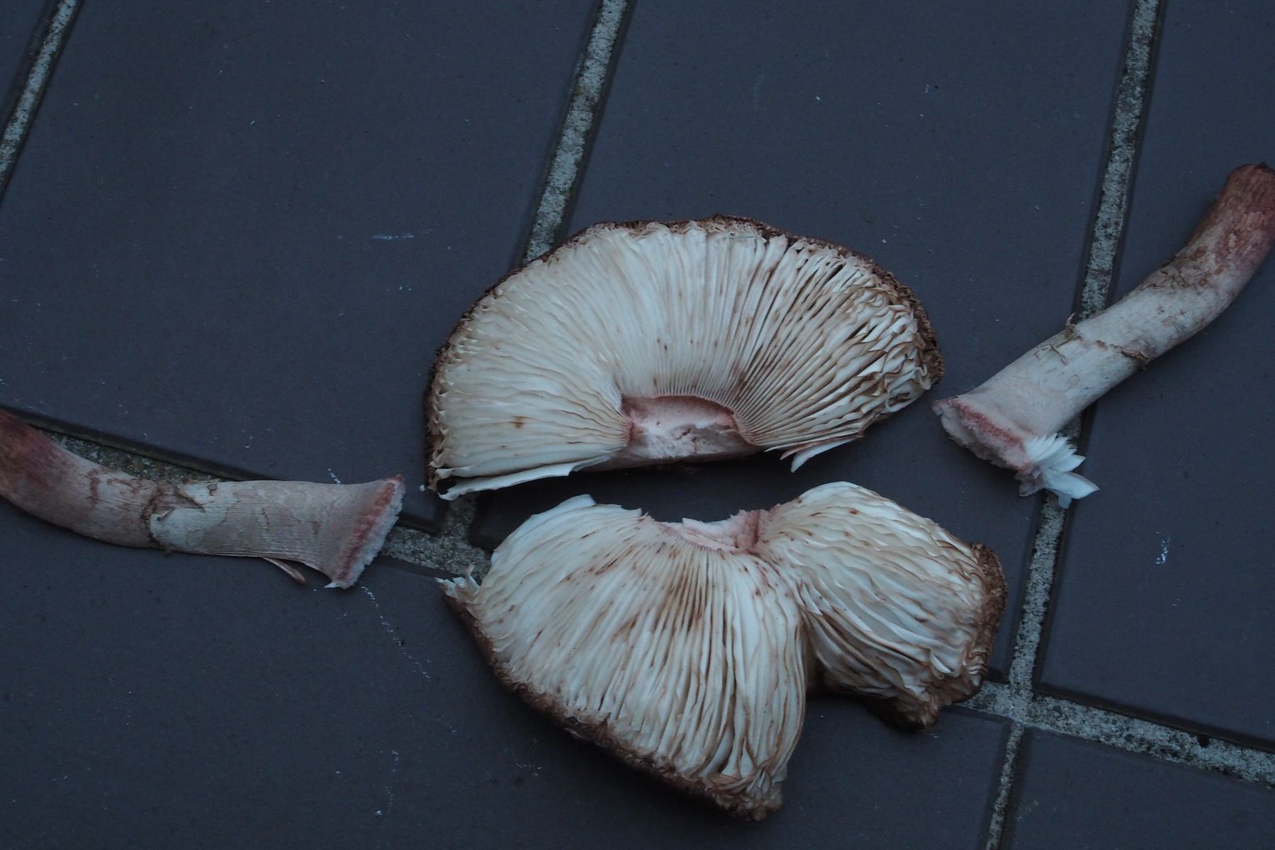 Ich habe gerade noch einmal den Fundort dieser Pilze aufgesucht in der Hoffnung, noch Pilze mit Stielbasis ausheben zu können, aber leider Fehlanzeige: Von den Pilzen waren kaum noch Reste zu finden.
