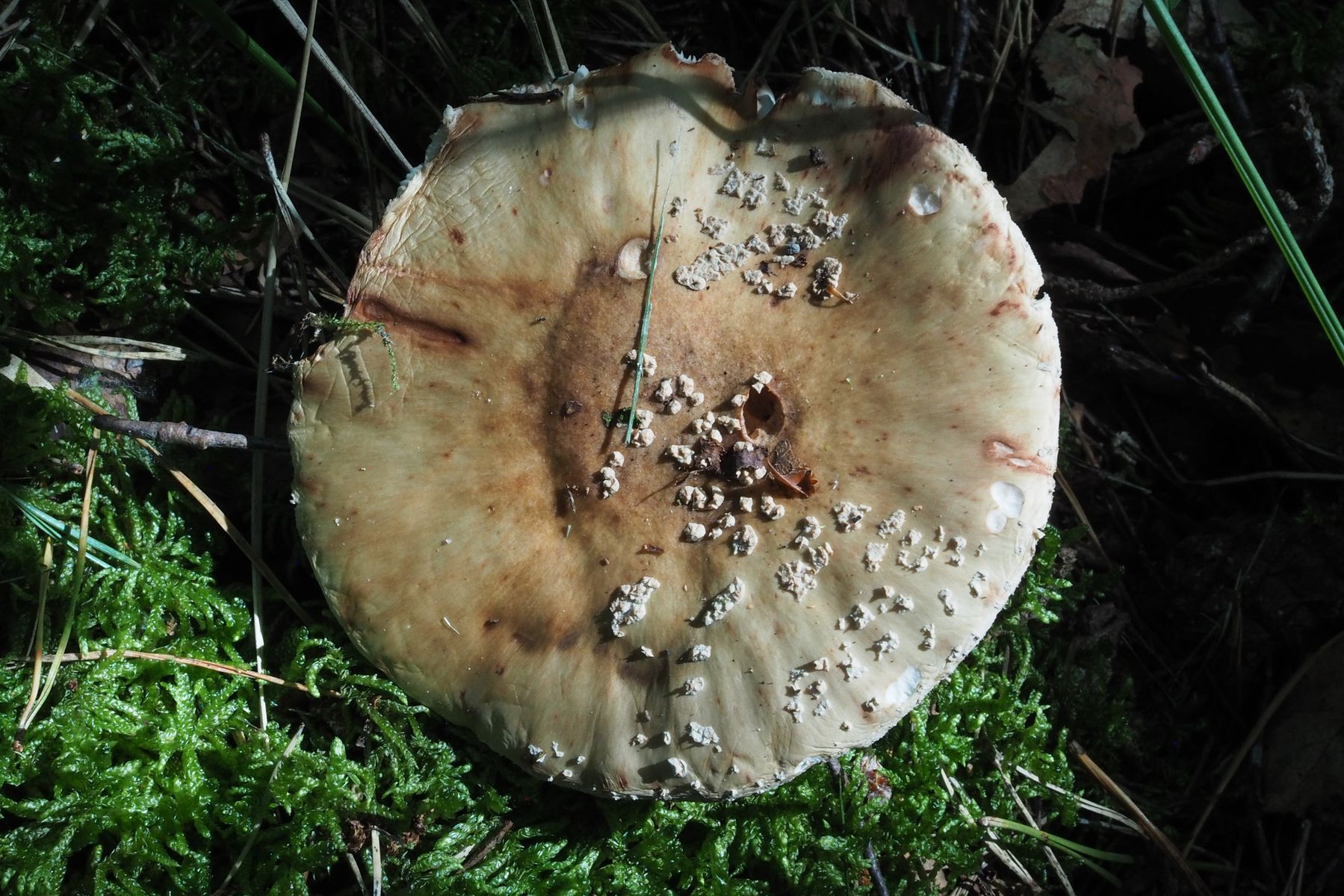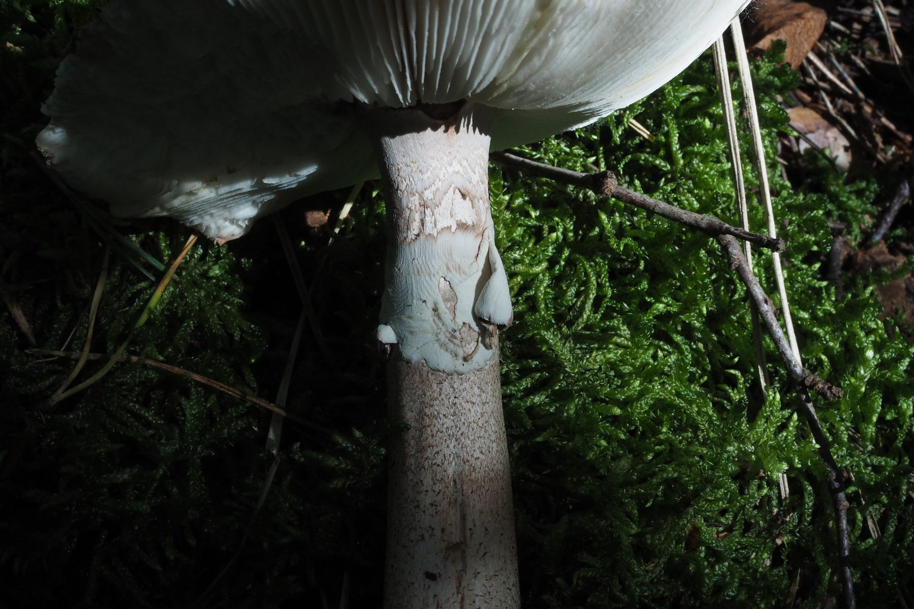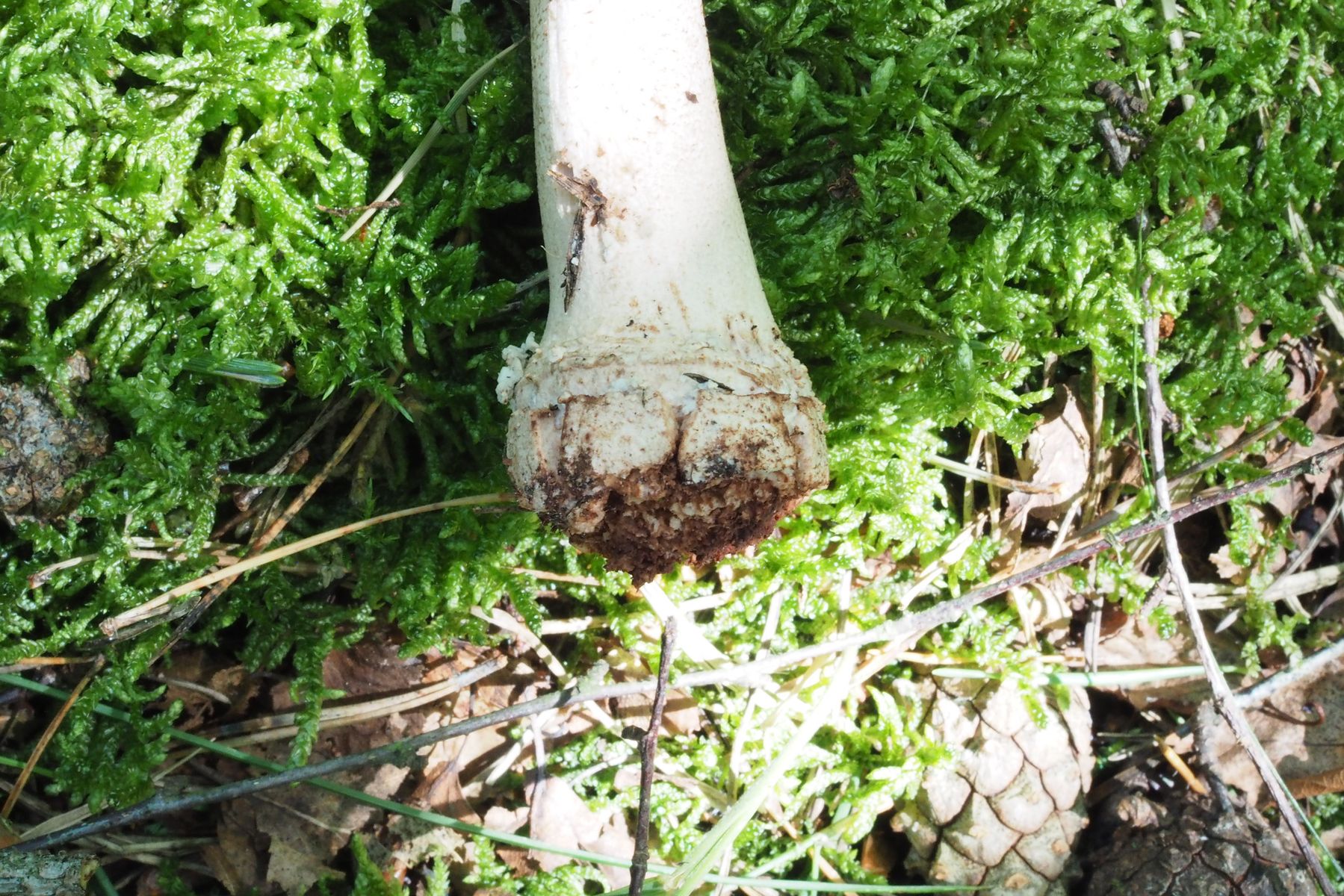 Meiner Meinung nach ist das hier, wie die anderen es auch schreiben ein älterer Perlpilz, ist aber noch gut zu erkennen trotz fehlender Knolle, die Färbung ist eindeutig, der Ring ist auch hinüber, zum verkosten natürlich nix mehr.