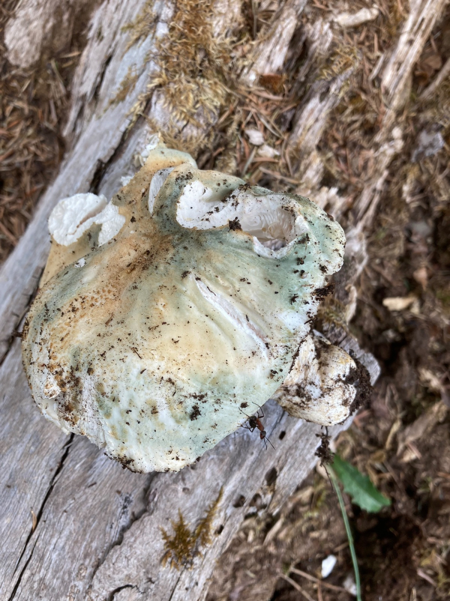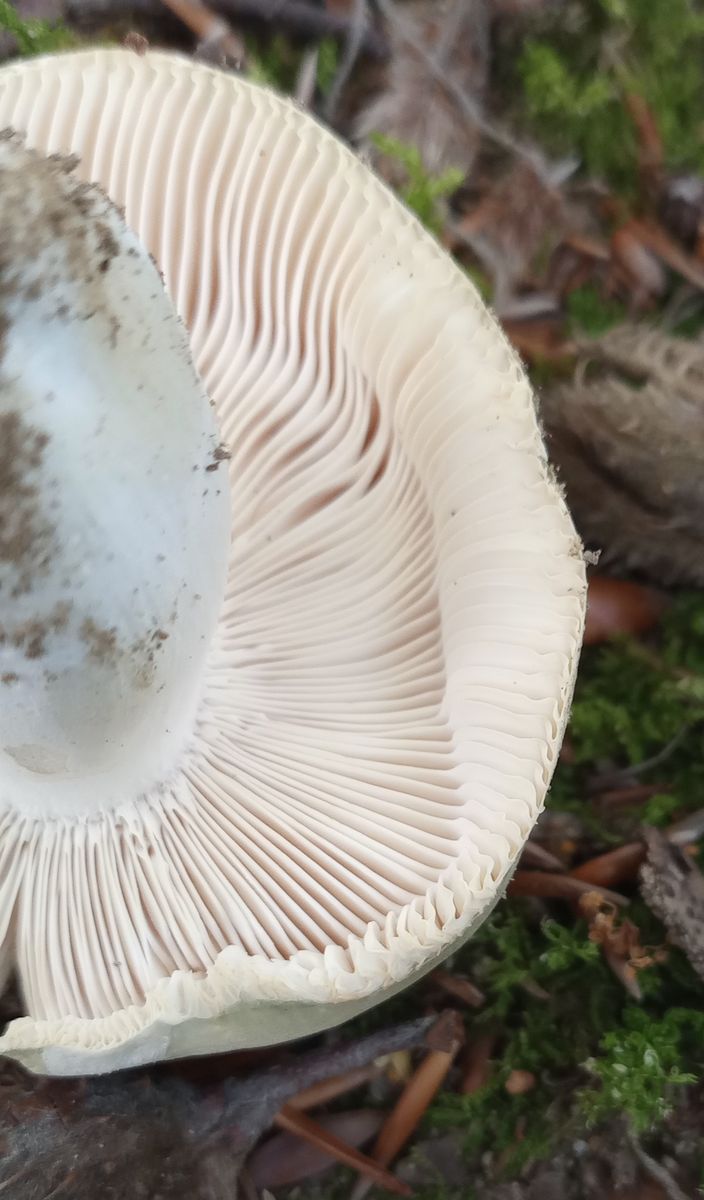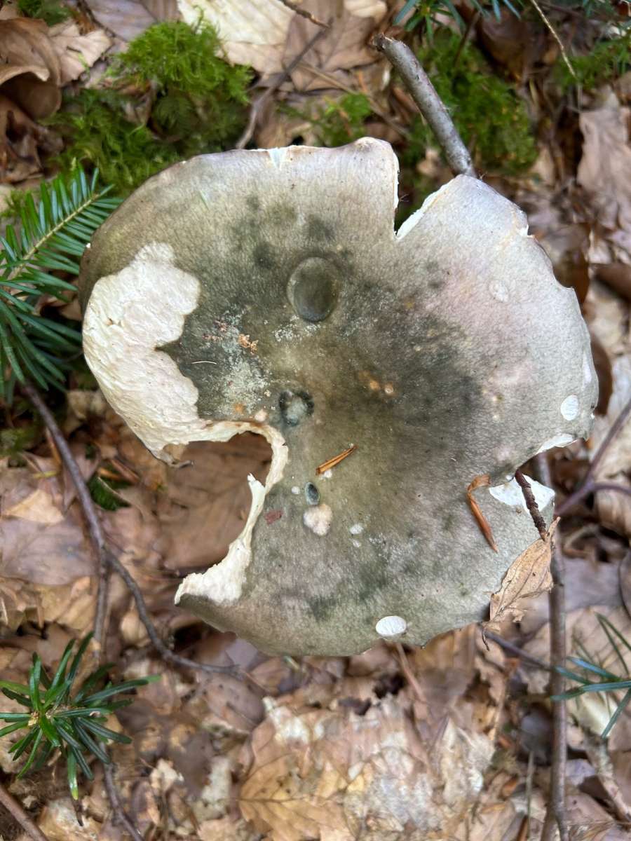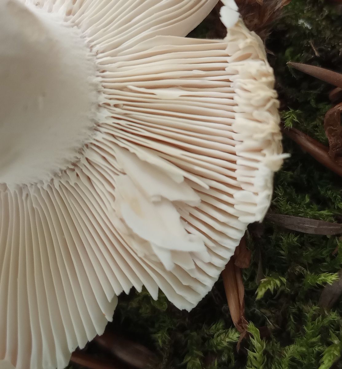 Mild im Geschmack, allenfalls mit viel Fantasie ein Hauch von Rettich. Gefunden unter Rotbuche. Lamellen leicht cremefarben und blätternd.