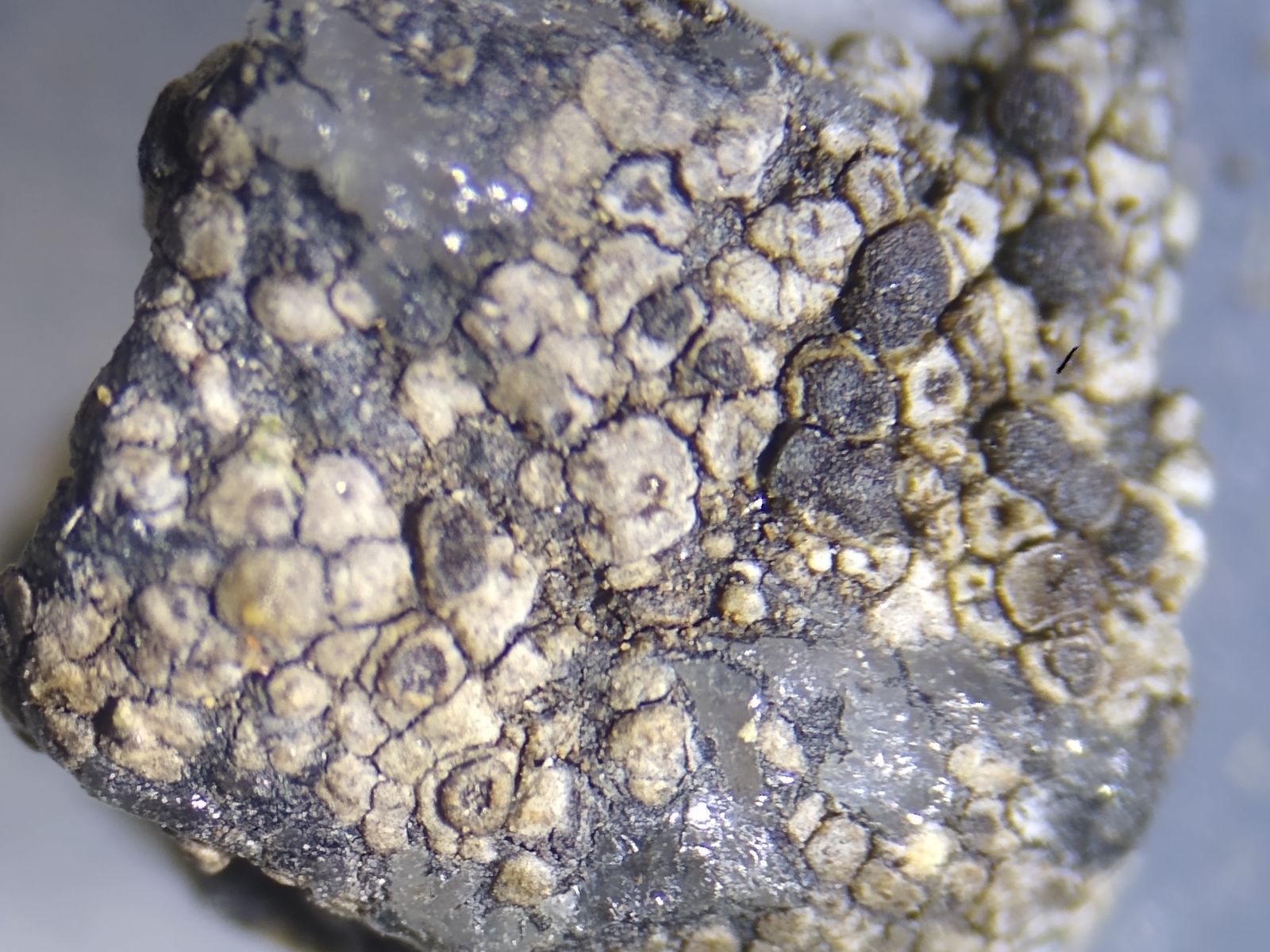 Bild 9 Apothecien bis 400µm Durchmesser vorgefunden, Areolen ähnlich groß.
