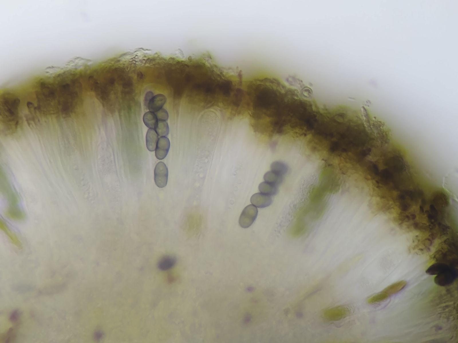 Bild 15 Epihymenium braun, Hymenium farblos, Hypothecium sehr schwach bräunlich