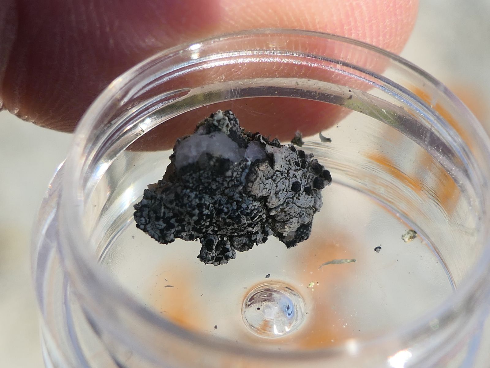 Bild 5 Auch hier wandert ein Krümelchen - gleich mit 2 Flechtenarten darauf - mit in die Heimat. Dort soll sie unter Lupe und Mikroskop kontrolliert werden.