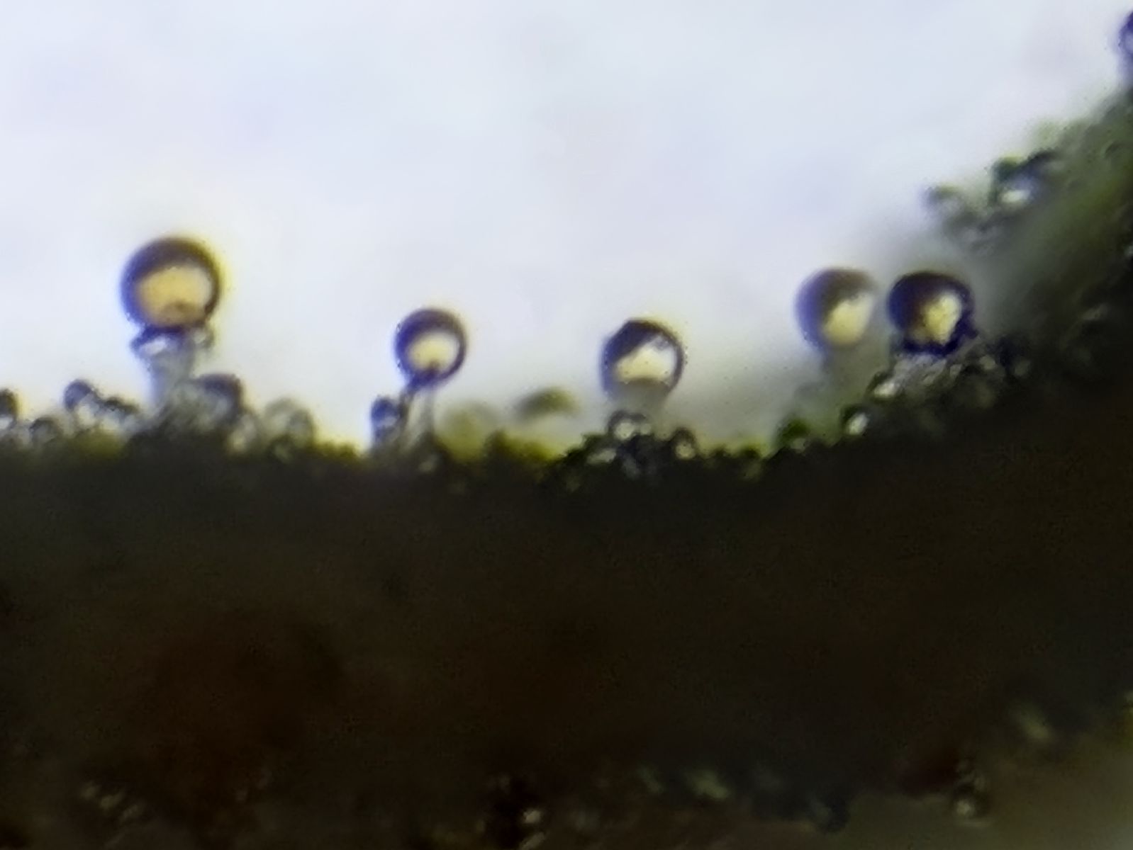 Nach dem Quetschen der Lamelle waren von den dicken Gloeozystiden nur noch Tropfen übrig...