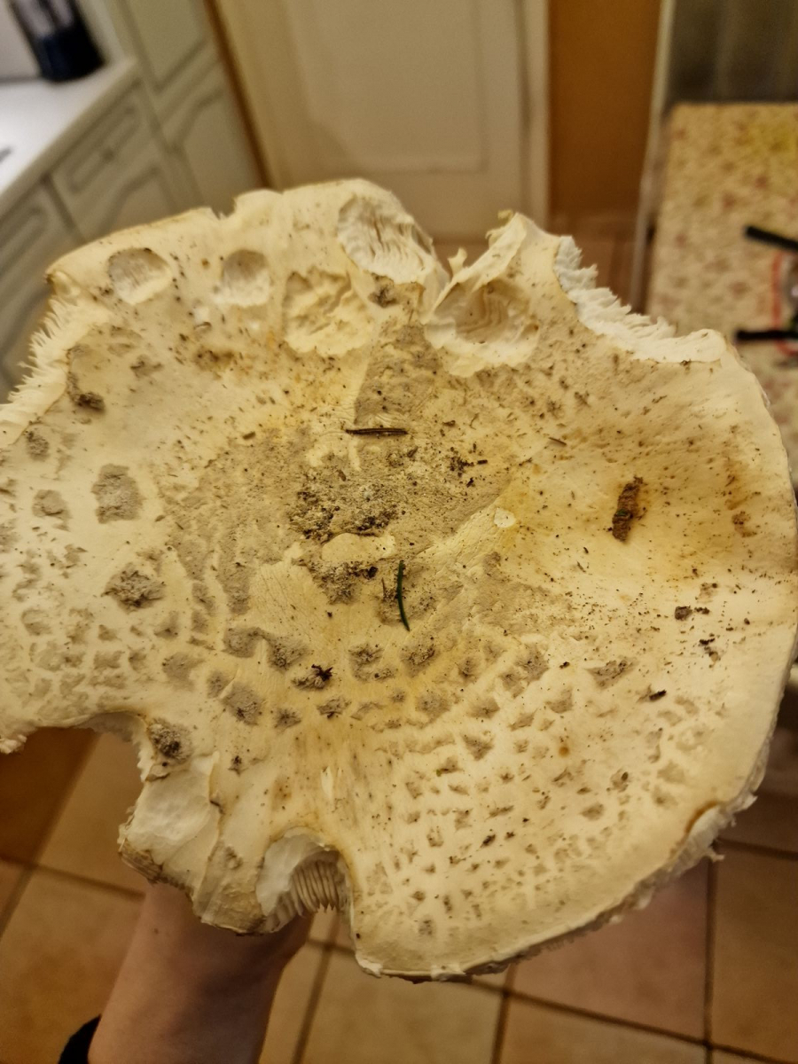 das ist kein Parasol, sondern ein Knollenblätterpilz. Welcher genau lässt sich m.M.n. nicht seriös beantworten, weil wichtige Merkmale wie z.B. die Form der Stielbasis nicht erkennbar sind.