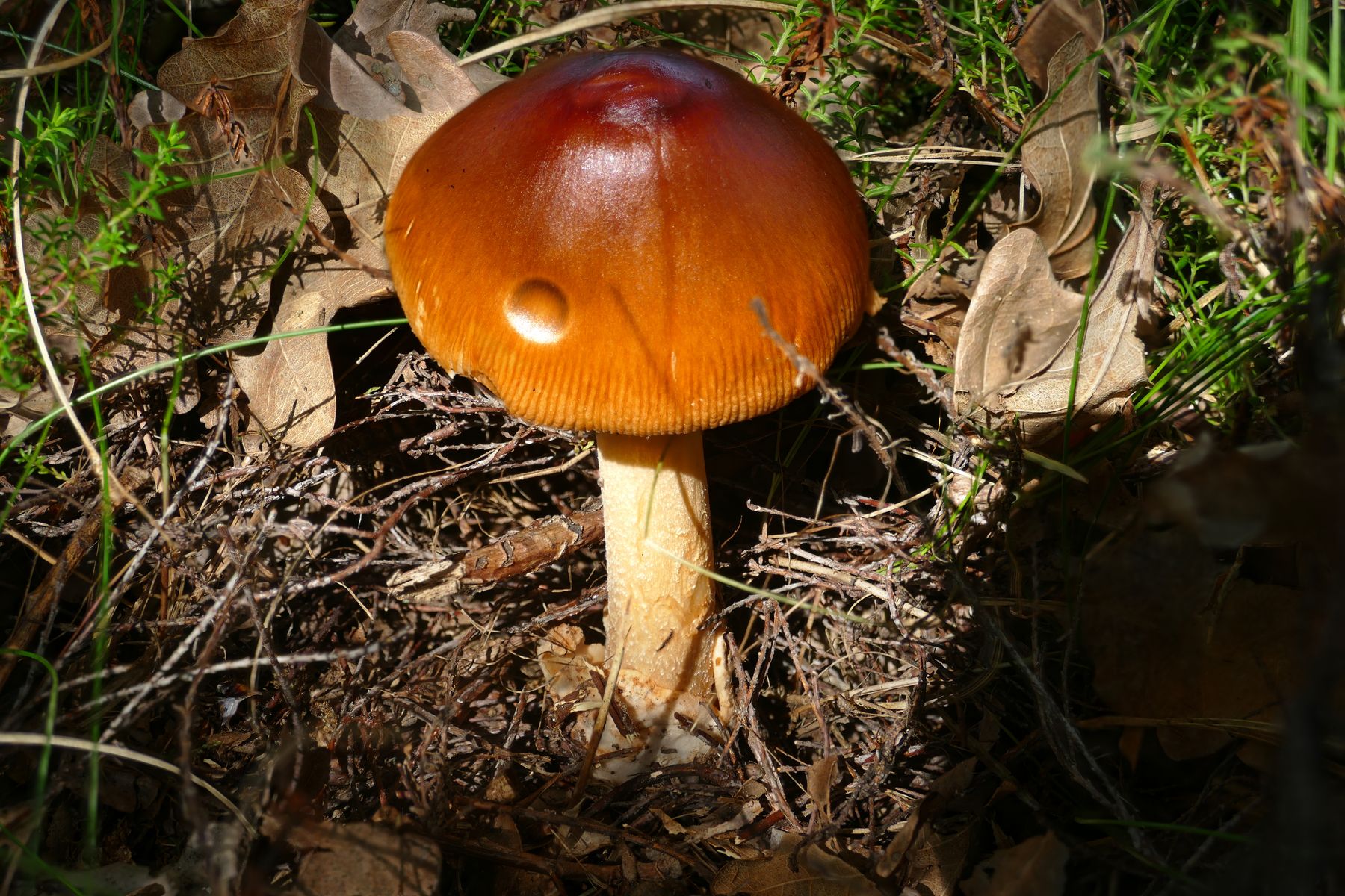 Im Übrigen wundert es mich, dass ich beim Entnehmen des Pilzes die Scheide übersehen haben muss. Vielleicht hat sie tief im Bewuchs gesteckt.
