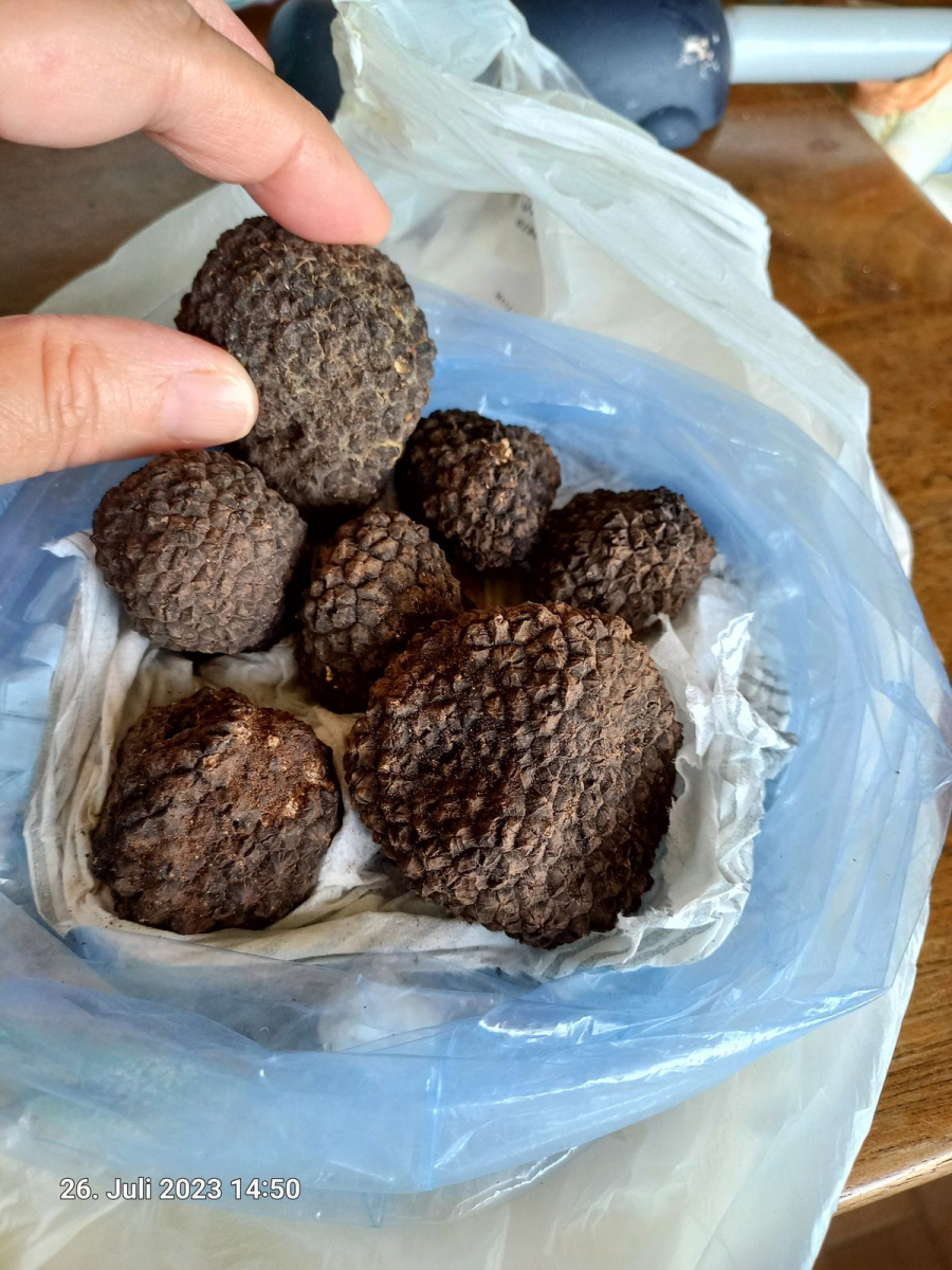 mein Cousin war gestern mit einem Freund Trüffel suchen und hat mir einige vorbei gebracht. Heute gab es ein Paar pur gehobelt über selbstgemachte Ravioli mit Ricottafüllung und ein bisschen Olivenöl.