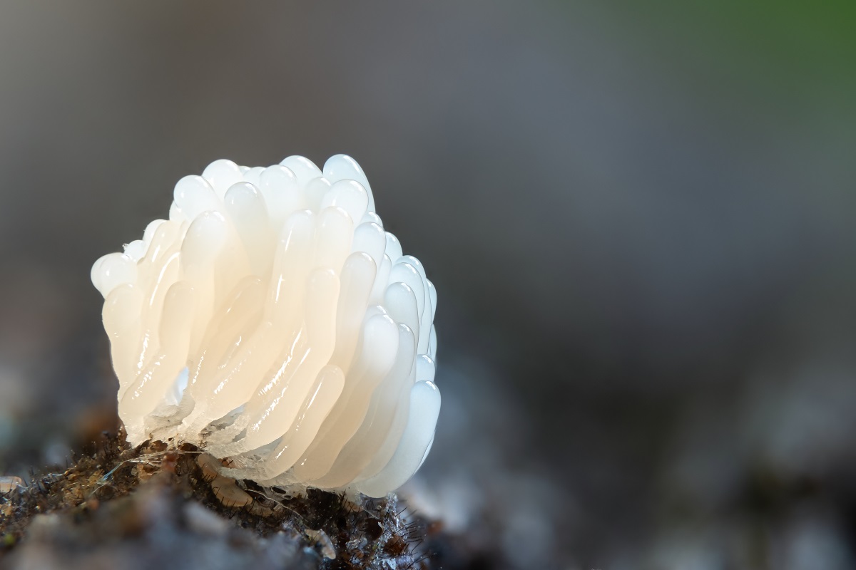 Die Schleimis sind in einem Auenwaldmischwald auf einem vermodernden Laubholzstamm gewachsen.