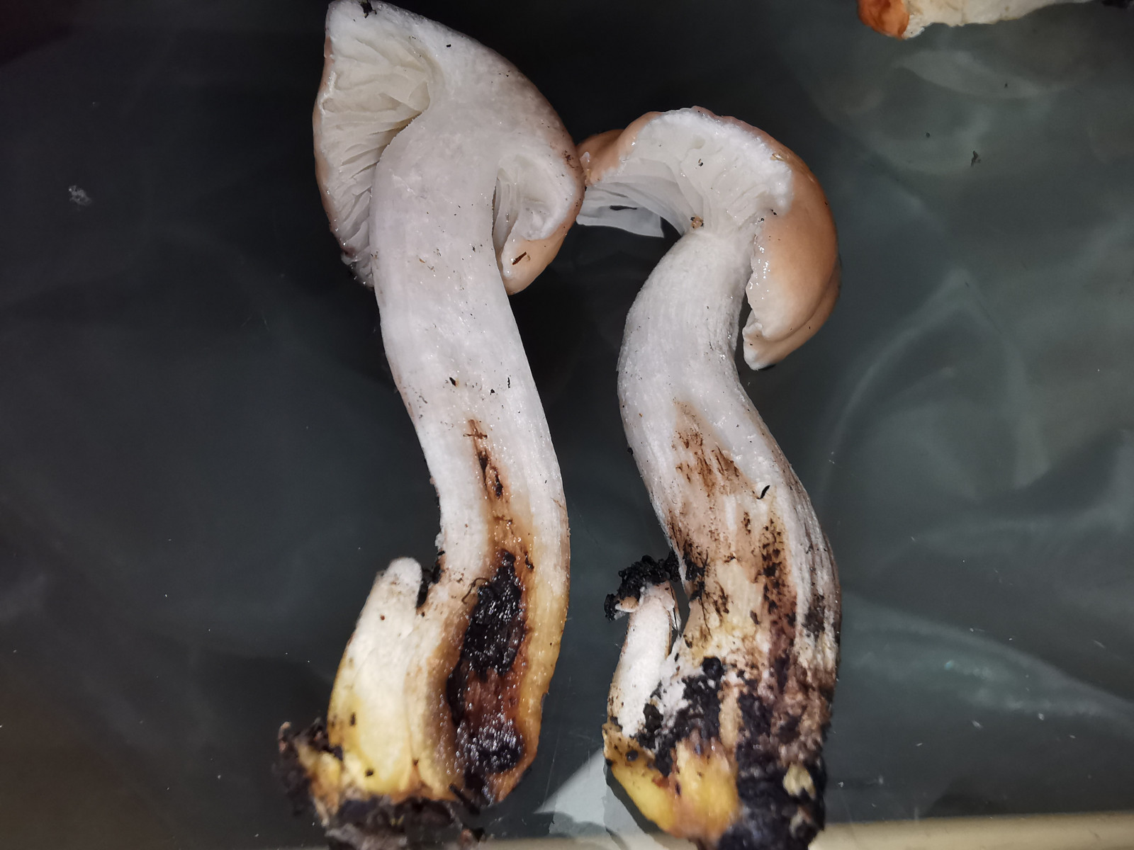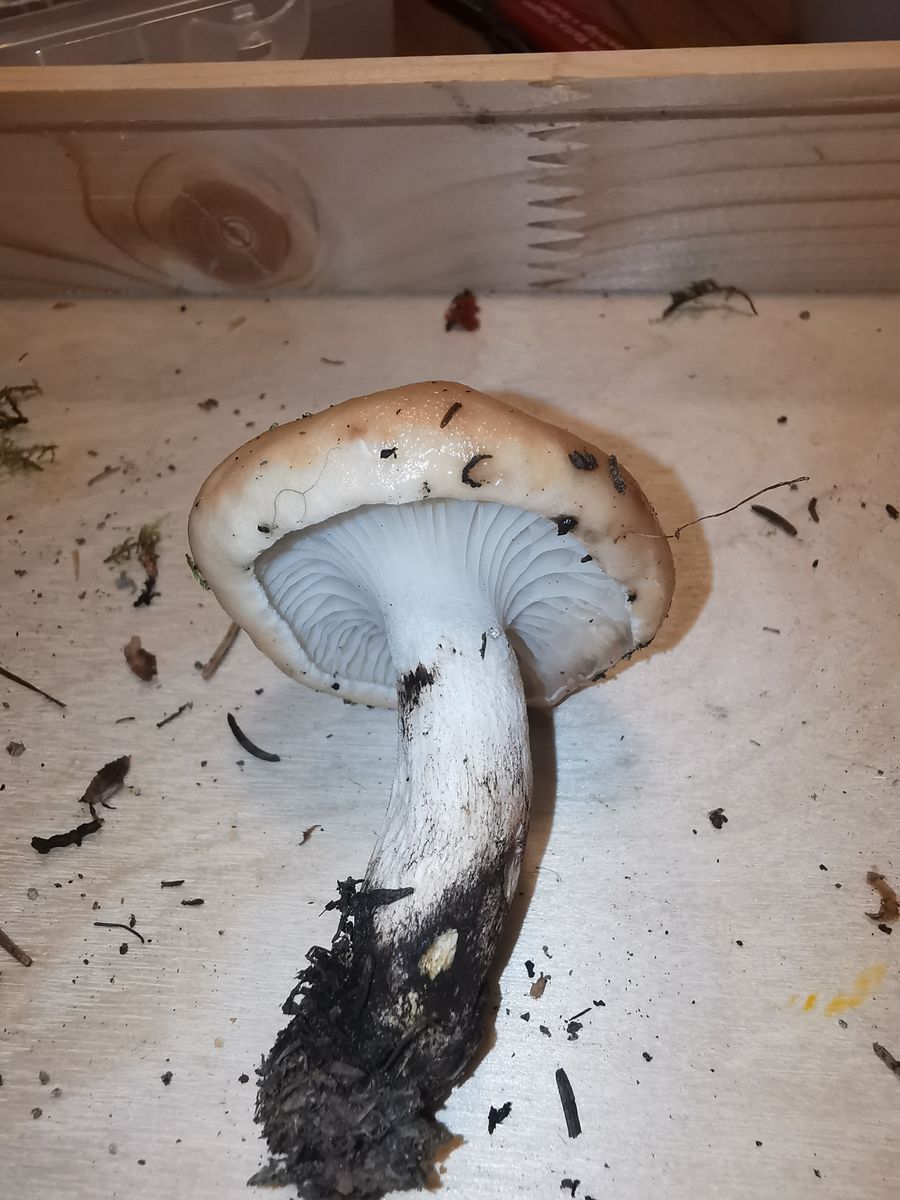 • Die Lamellen haben gar nicht geschwärzt. Auch beim Hut konnte ich zumindest nach einer Stunde keine wesentlich Veränderung der Farbe feststellen. Leider habe ich den Pilz nicht mehr, aber ich habe eine Stunde später noch dieses Foto gemacht: