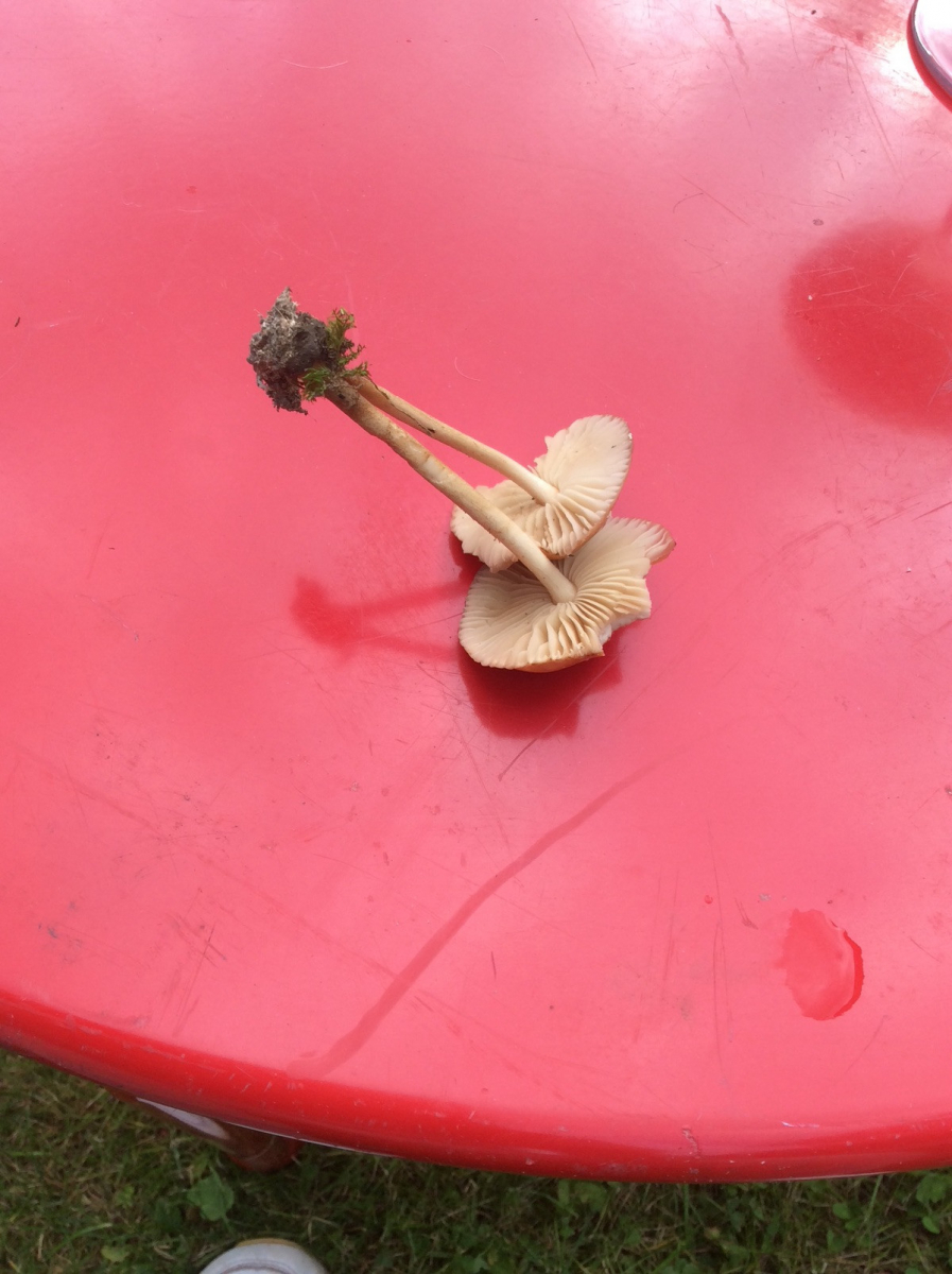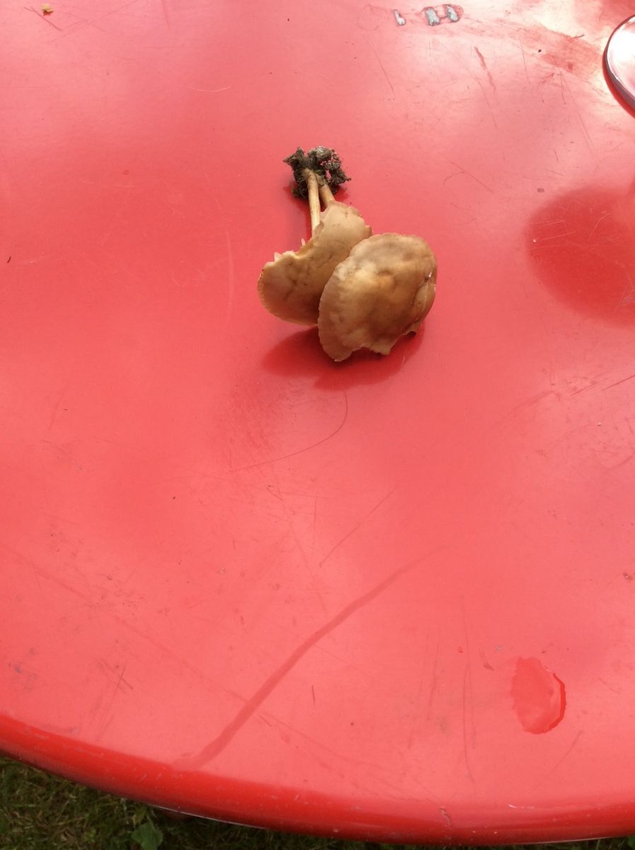 Kann jemand helfen? Die Bilder zeige Pilze von einer großen Wiese, gefunden neben Wiesenchampignons in einem Hexenring. Geruch uncharakteristisch, Geschmack eher pilzlich angenehm, Sporenbild weiß, Hut trocken, kein Ring. Ich denke an Schwindlinge oder Rüblinge. Essbar? Danke sehr. K. Schick.