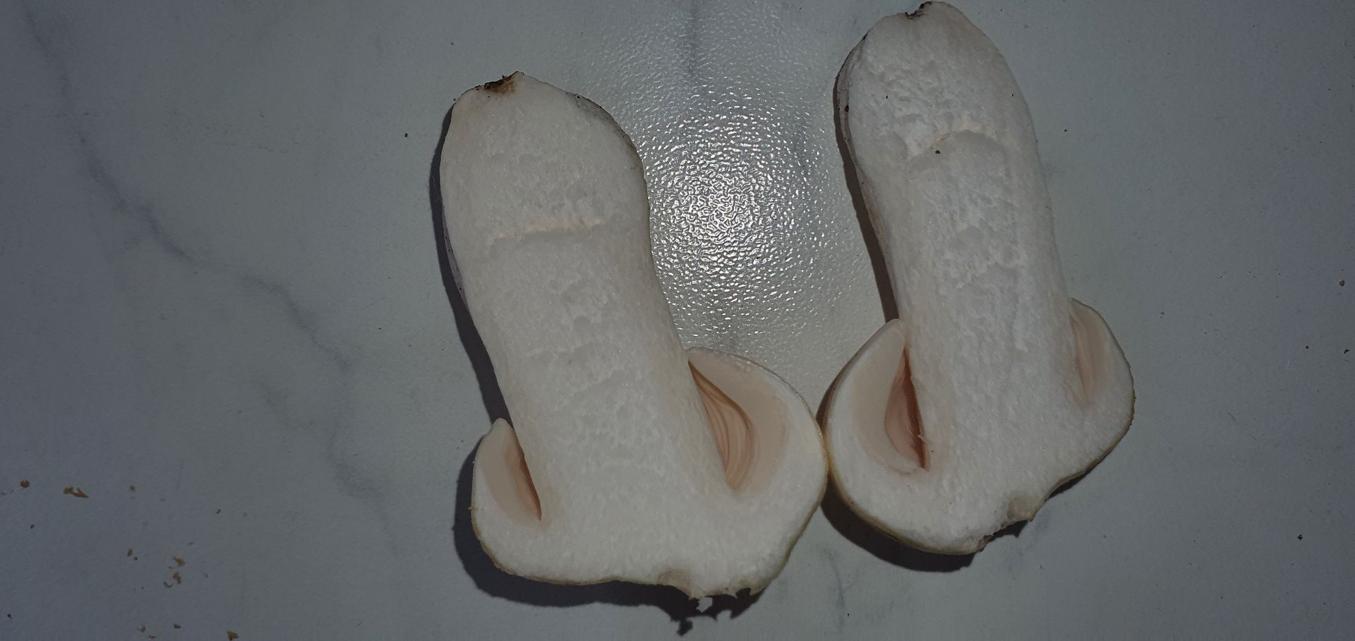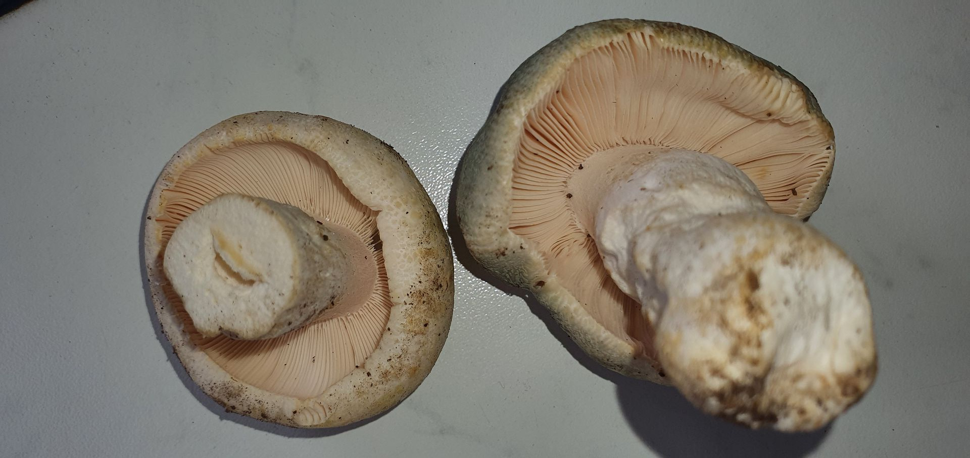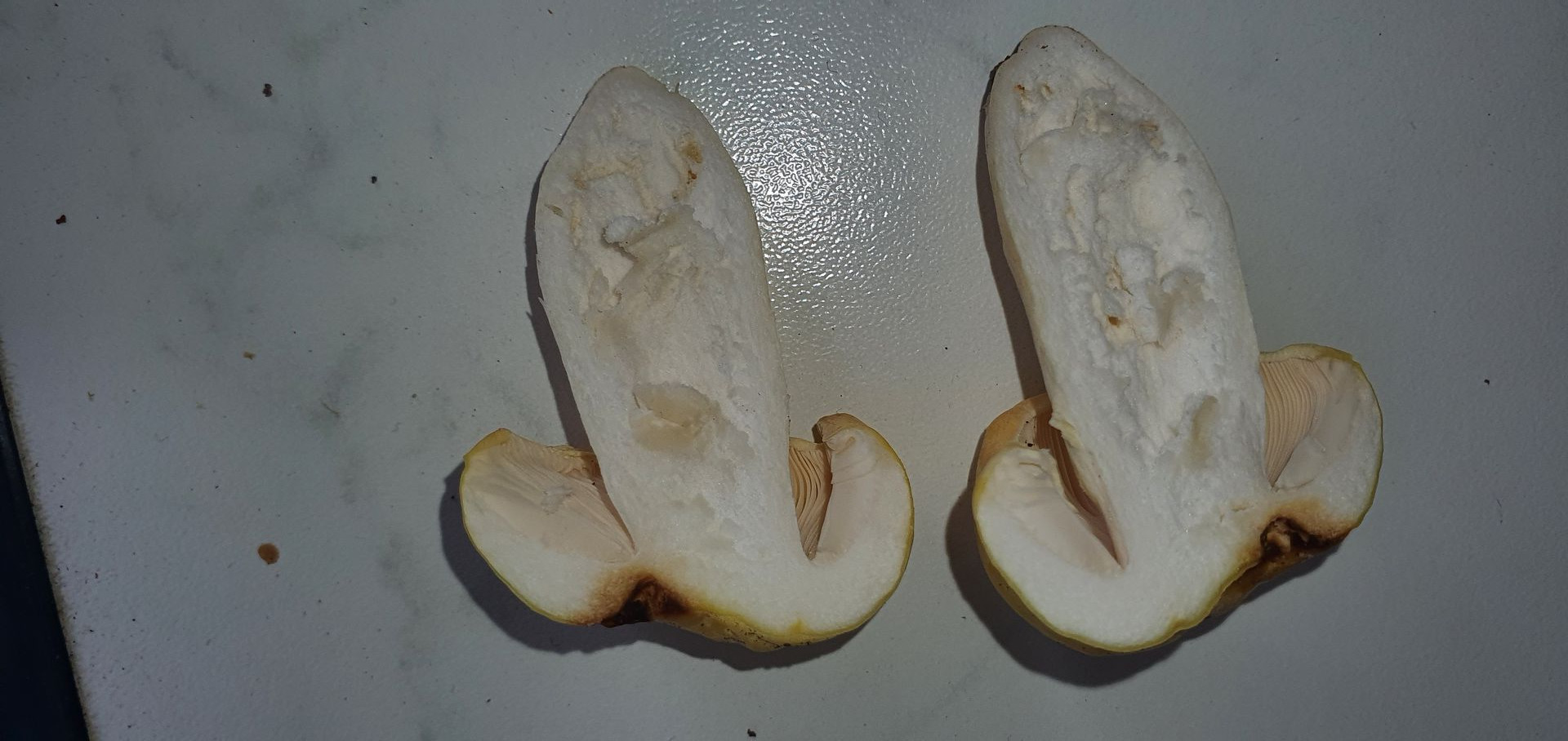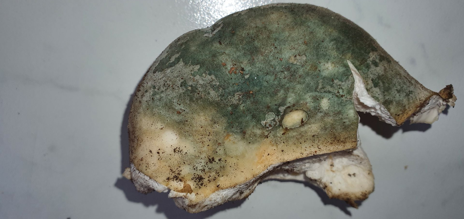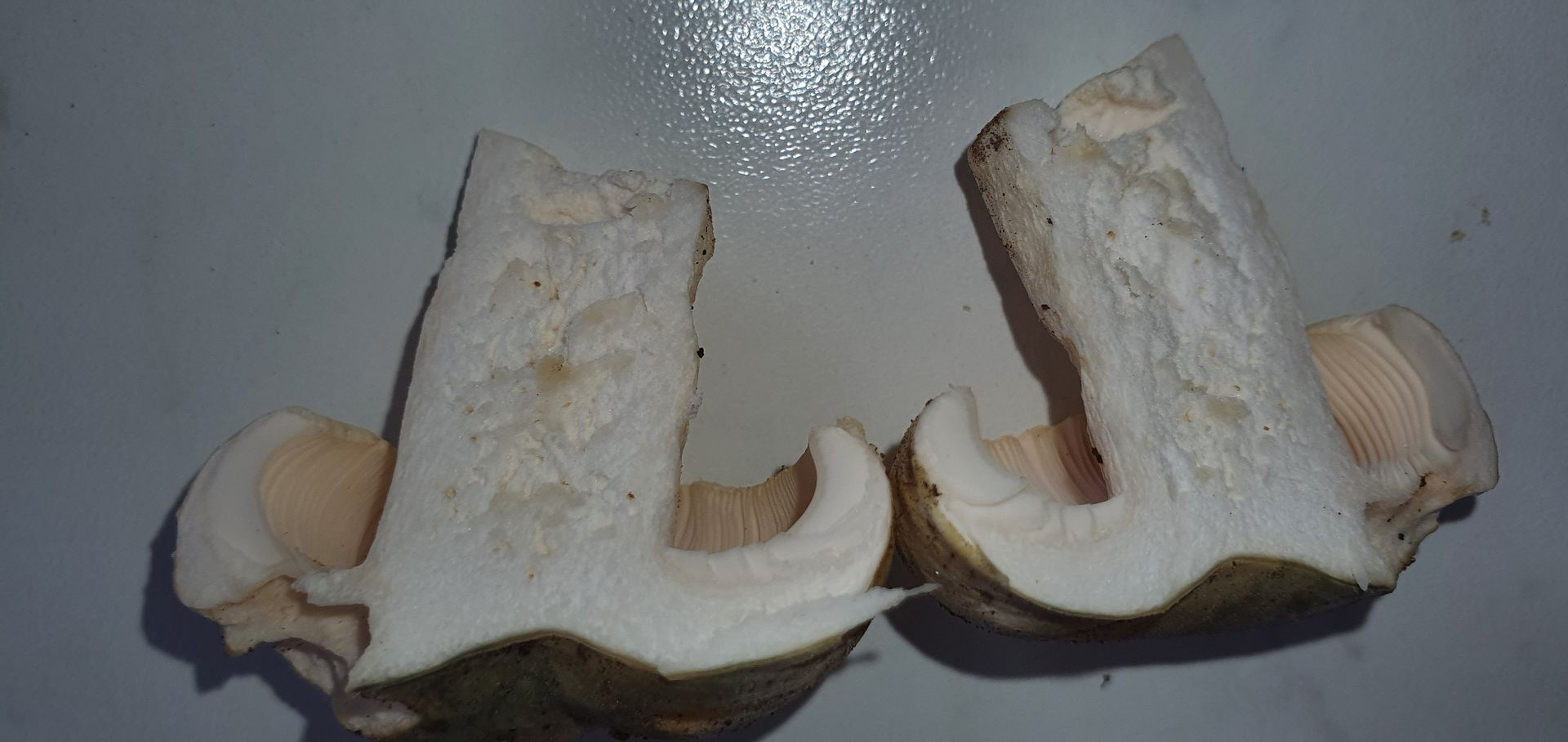 4. Weiterer Erstfund. Ich denke R. virescens. Geruch recht neutral, ältere madige etwas aufdringlich, leicht mehlig. Geschmack komplett mild. Lamellen brüchig. Huthaut sehr dünn wirkend, ließ sich leicht abziehen, etwa gut bis zur Hälfte. Hutfleisch fest, Stielinneres recht weich. Lamellen mit einem leicht rosalichem Schimmer, so wie ganz helles Geflügelfleisch.