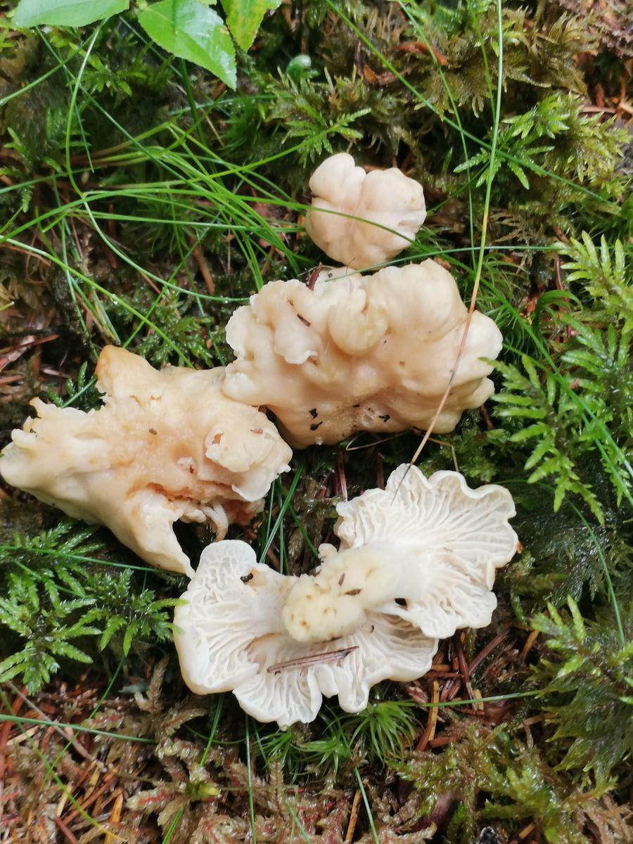 also Fichtenwald , höhere Lage , das habe ich gemeint . Es gehet um keine Blaser Pfifferlinge - Cantharellus palens , das sind Cantharellus ferruginascens - Rostfleckiger Pfifferling